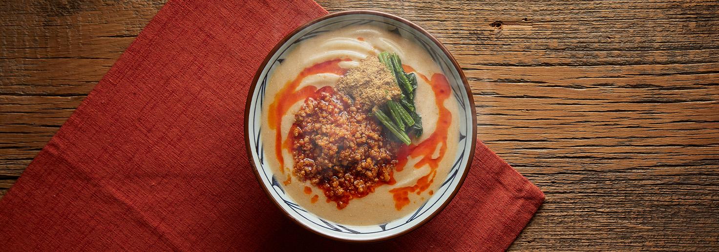 丸亀製麺の2022年秋期フェア商品「うま辛担々うどん」のプロモーション。