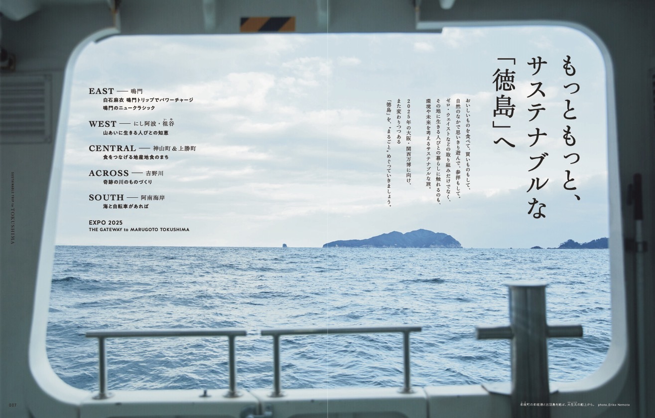 講談社刊行『FRaU S-TRIP』を丸ごと一冊編集。鳴門やにし阿波・祖谷、神山町や上勝町、吉野川、阿南海岸など、徳島の地に生きる人々の暮らしに触れながら環境や未来を考えるサステナブルな旅を。2025年の大阪・関西万博に向けてまた変わりつつある徳島を、まるごとめぐる。