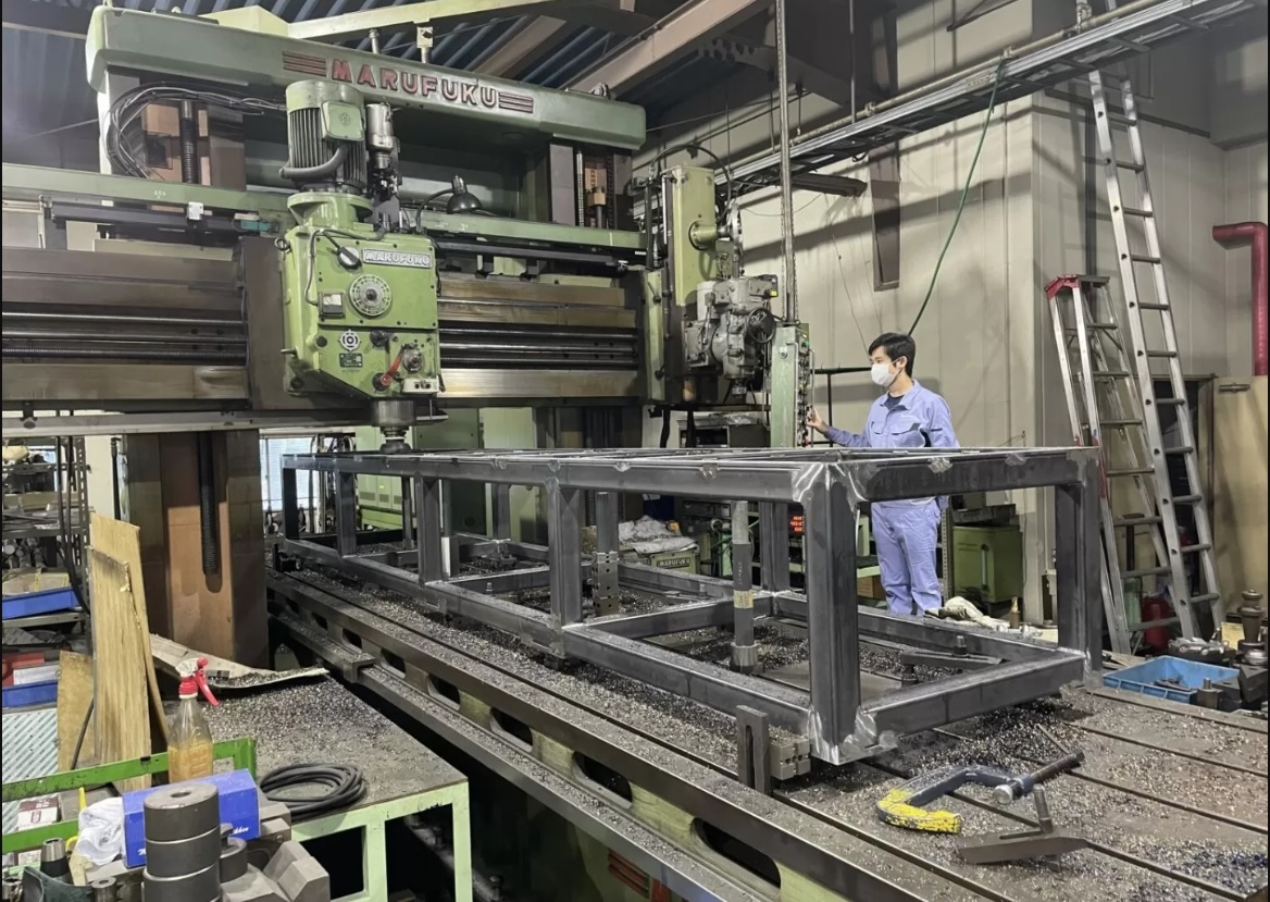 当社最大の機械であるプレーナーで仕上げ加工した、オーダーメイド機械用のフレームです。