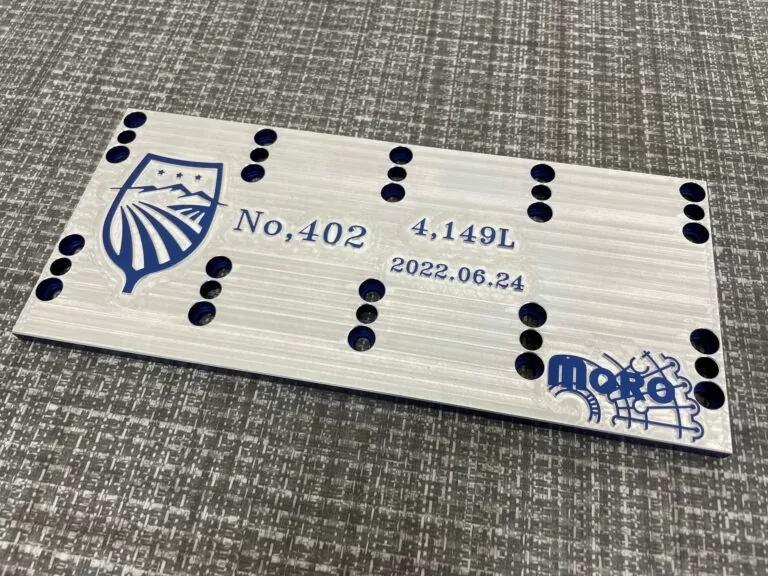 外部の方に考えていただいたデザインでプログラムを組み、アルミプレートへの彫刻を行います。