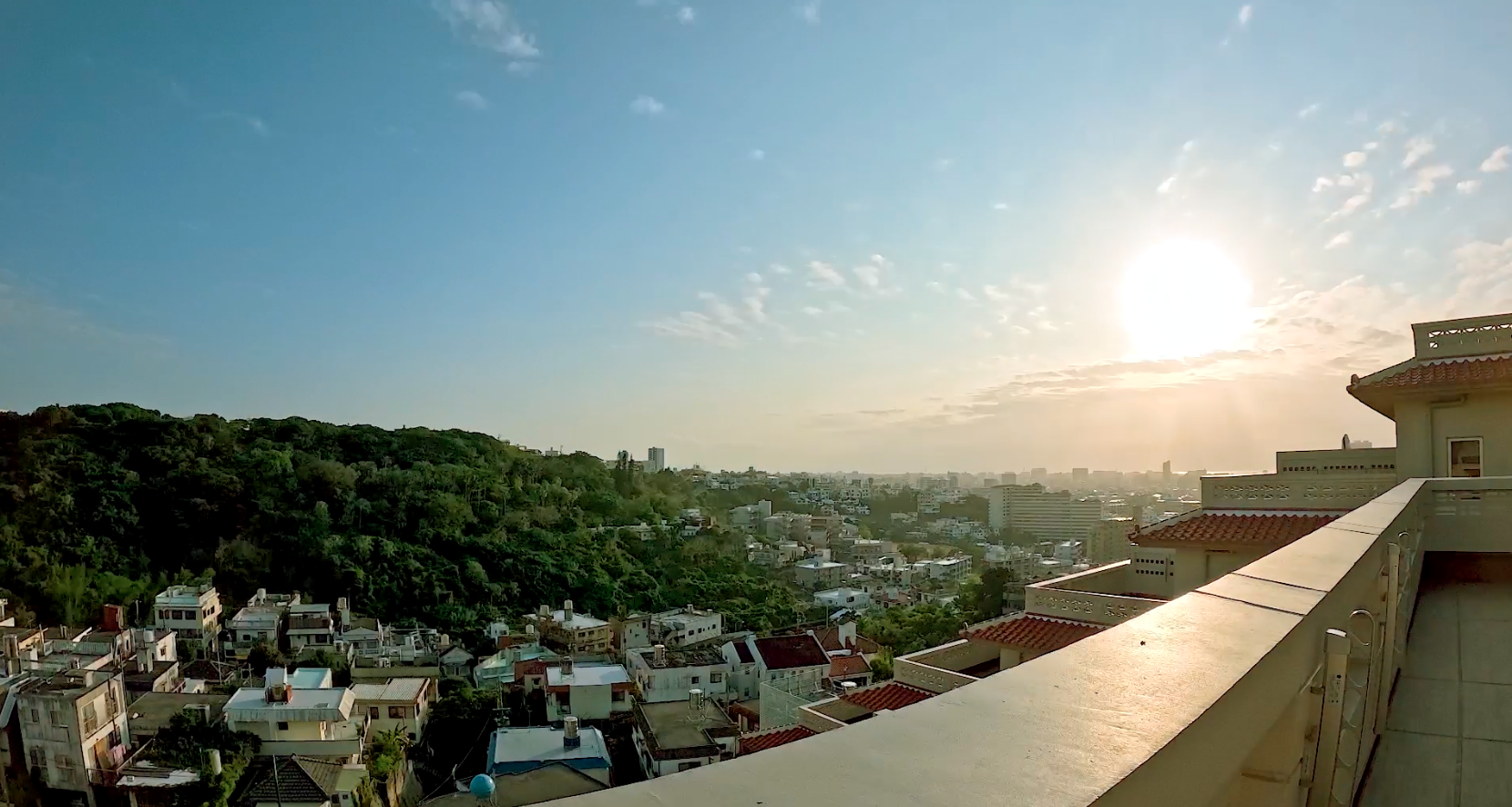 沖縄県の分譲マンションで大和ハウス工業初となる専有面積160㎡超のプランや赤瓦や琉球石灰岩など沖縄の風土を感じる部材を採用し、海抜約65mの高台からは、緑豊かな繁多川公園や那覇市内の街並み、東シナ海を望むことができ、沖縄県の四季折々の自然景観を楽しむことができます。
