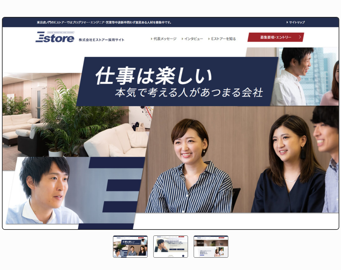 ECシステムの開発・提供からマーケティングサービスまで、ネットショップの総合支援を行なう株式会社Eストアー様の採用サイトです。