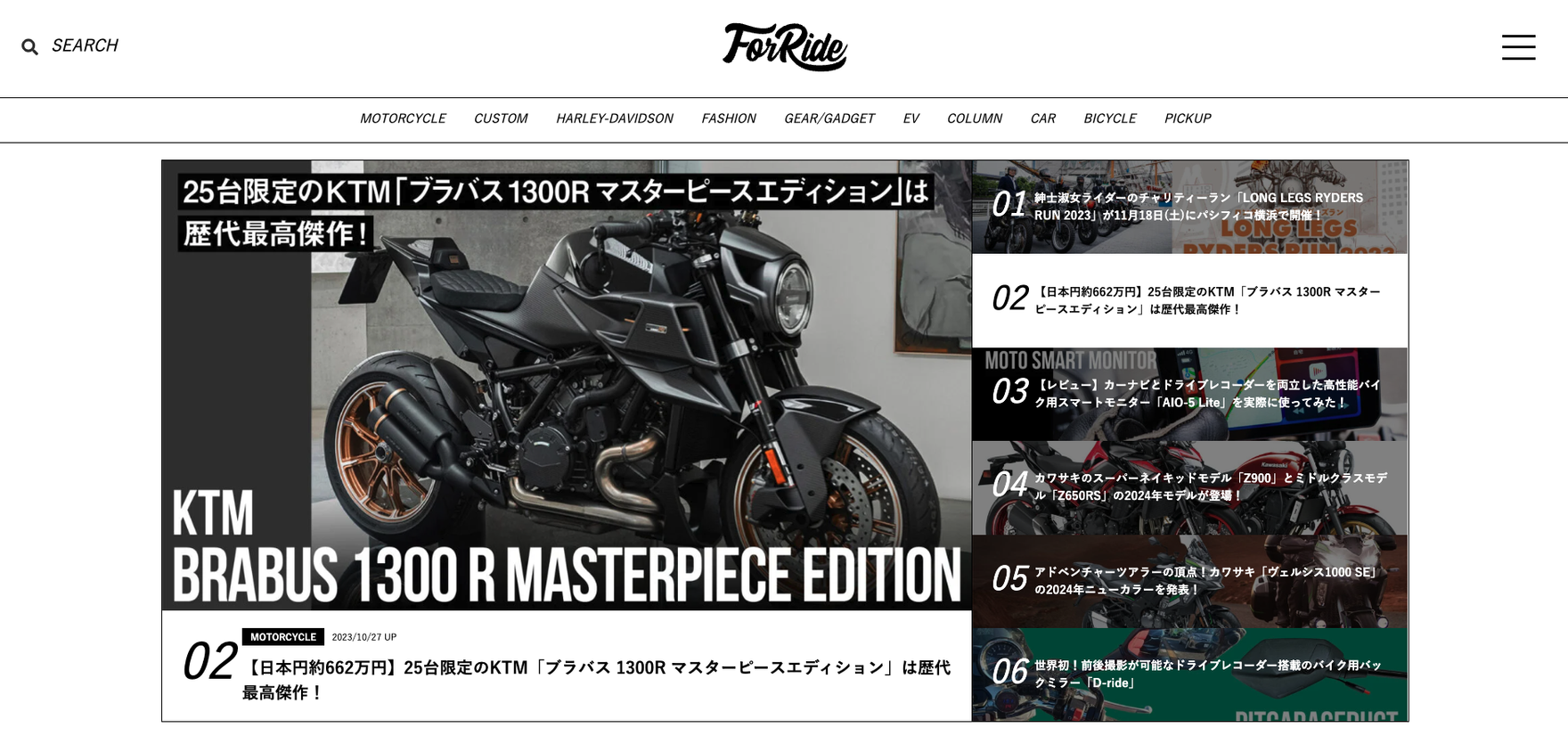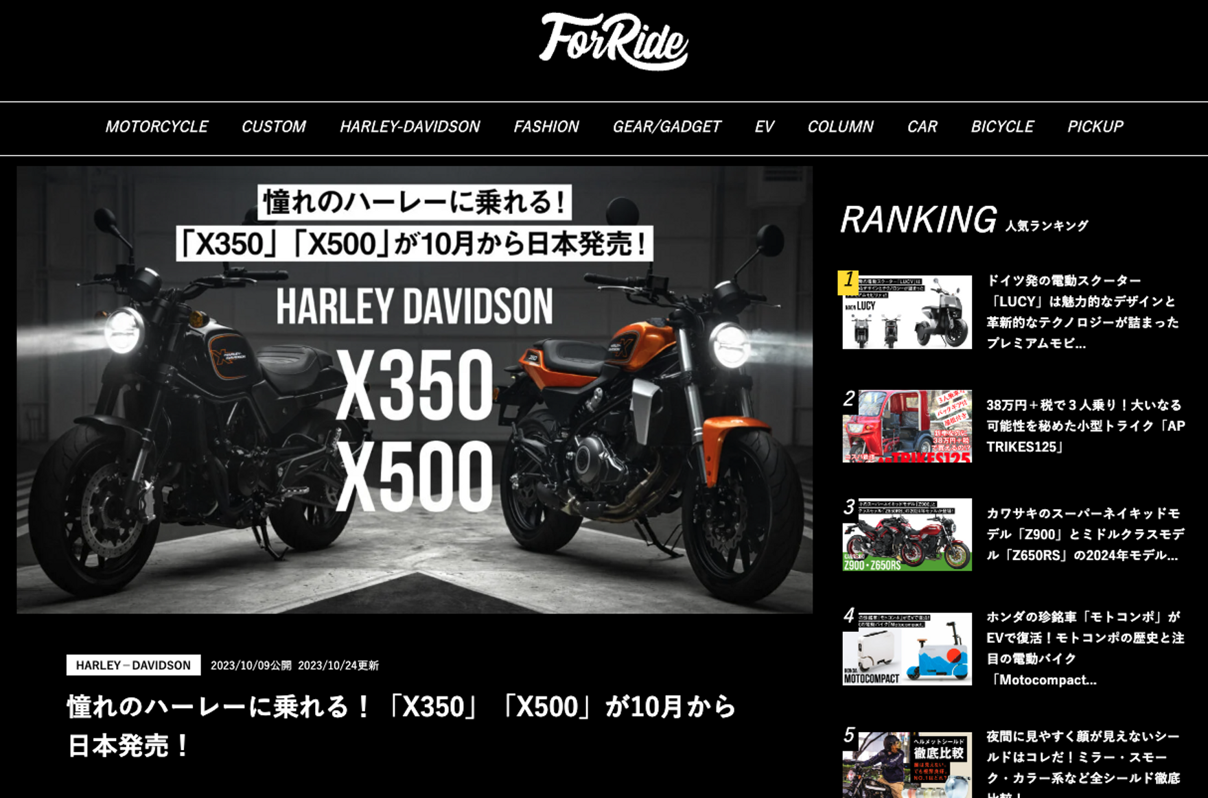 バイクにまつわるカスタム、スタイル、アクティビティまで、バイクの楽しさを伝えるショートニュースメディア「forRide(フォーライド)」