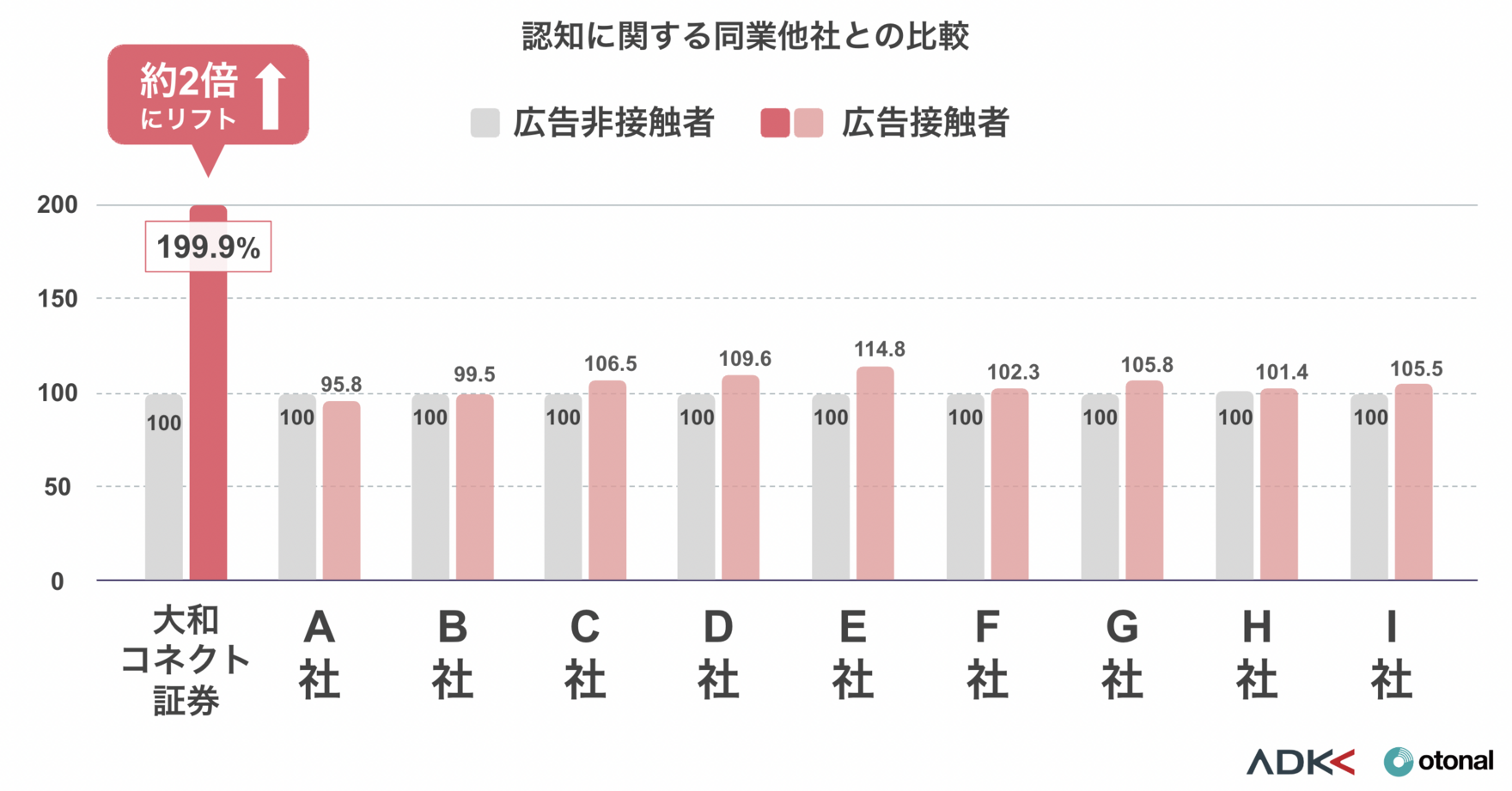 stand.fmにて音声広告配信を行っていない同業他社との比較でも、音声広告の配信により大和コネクト証券のブランド認知が拡大したことが分かりました。