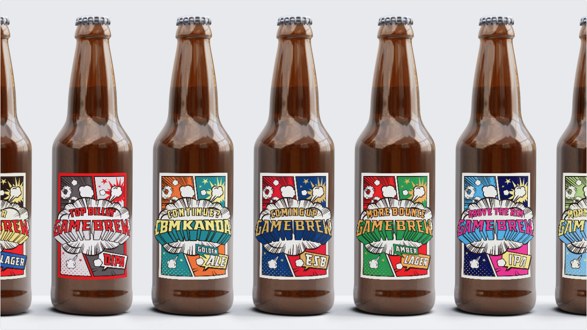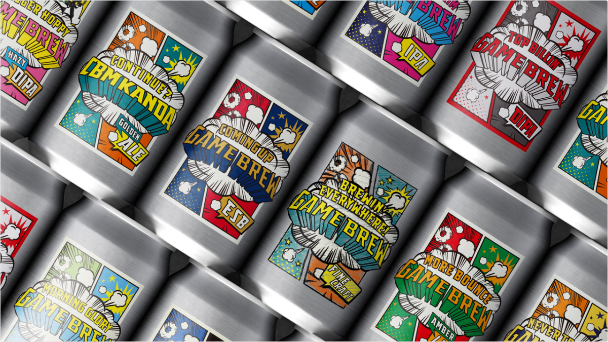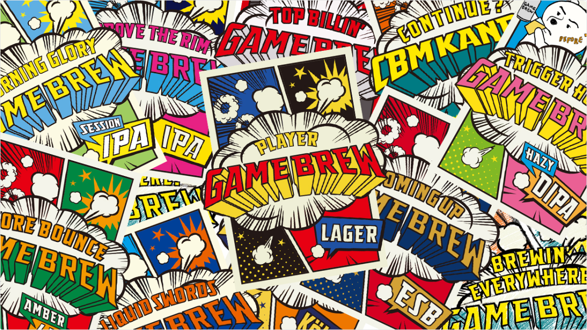佐賀県のブルワリー”GAME BREW”のネーミング、ロゴデザイン、ラベルデザインを担当しました。 「勝利を祈念し、勝利を祝う。日常飲みの本格クラフトビール」をVISIONにネーミングを作成し、ポップで親しみのあるアメコミ風なデザインで構成しました。