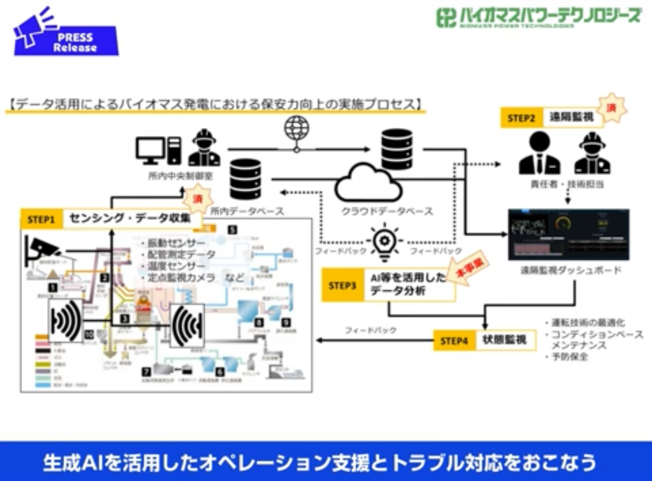 AIシステムの導入は当社にとって長年の悲願でもあり、『生成AI』が発電所の運転業務に具体的にどの程度貢献するのか期待するとともに、将来的に横展開可能な知見として検証・蓄積し、我が国のバイオマス発電所のDX化に貢献するべく全国に先駆けて推進してまいります。
