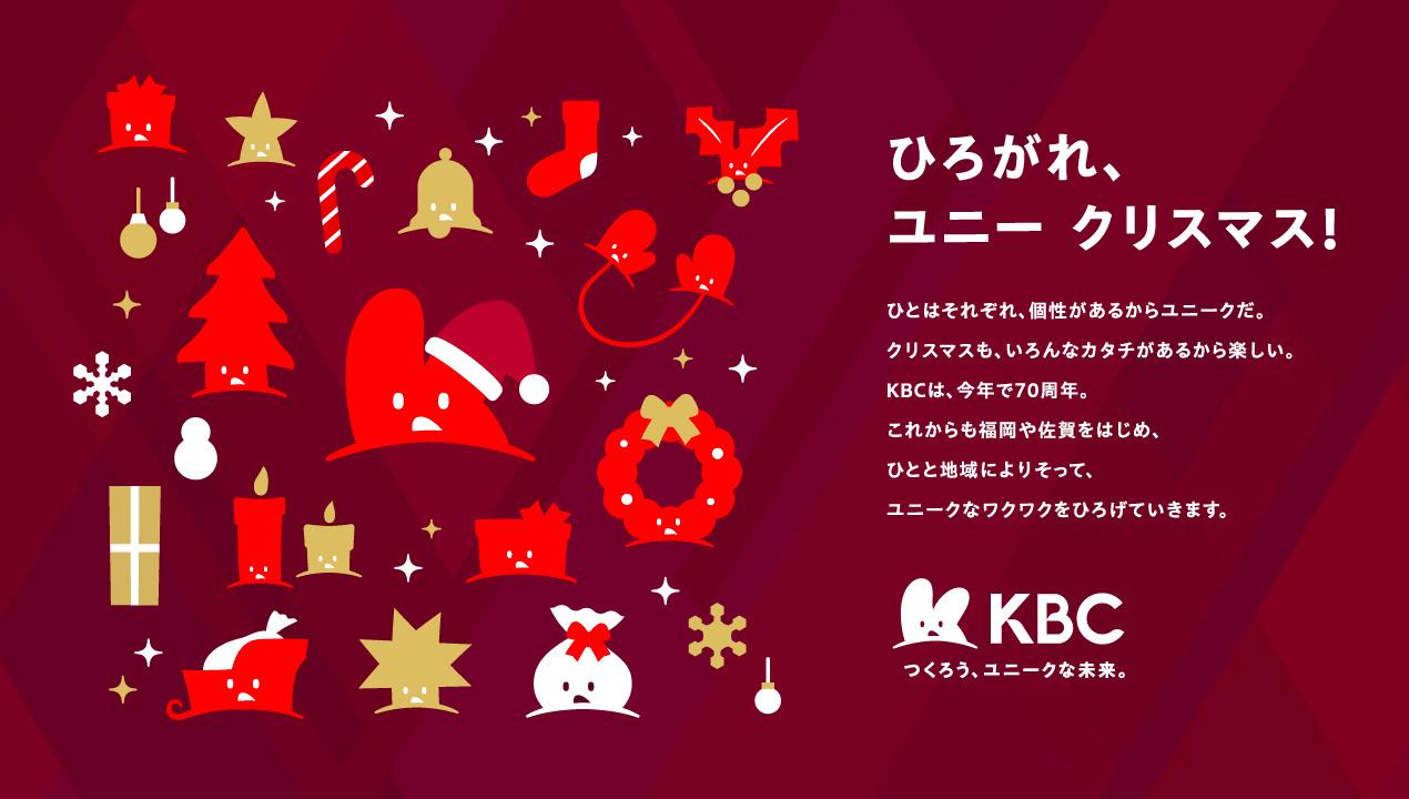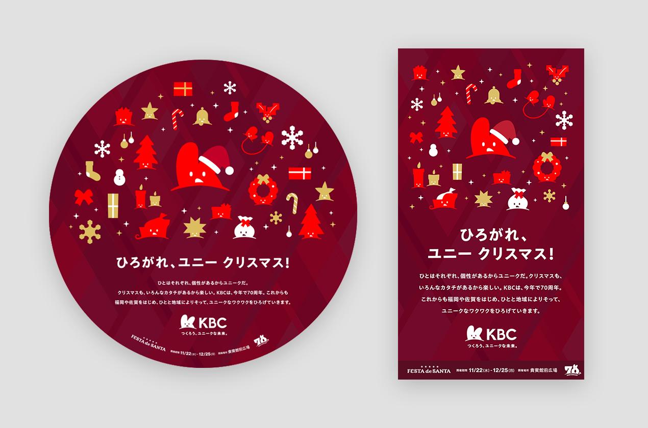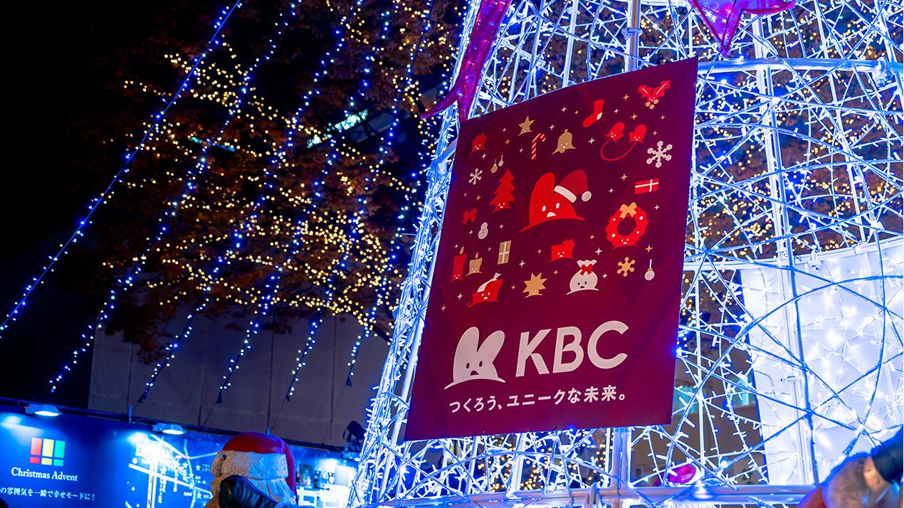 福岡の冬の風物詩として11年目を迎えた「福岡クリスマスアドベント」。昨年は645万人が動員する国内最大級のクリスマスイベントとして、年々規模を拡大しています。協賛として参加するKBCグループは“地域のユニークさをさらに伸張させたい”という思いを込めて、創立70周年記念事業「KBC 70th Anniversary FESTA de SANTA」を開催。福岡のランドマークである貴賓館前広場では100体を越えるサンタを設置。さらにCMや天神地下街のデジタルサイネージなどの広告を通じて、よりユニークが広がることを目指しました。