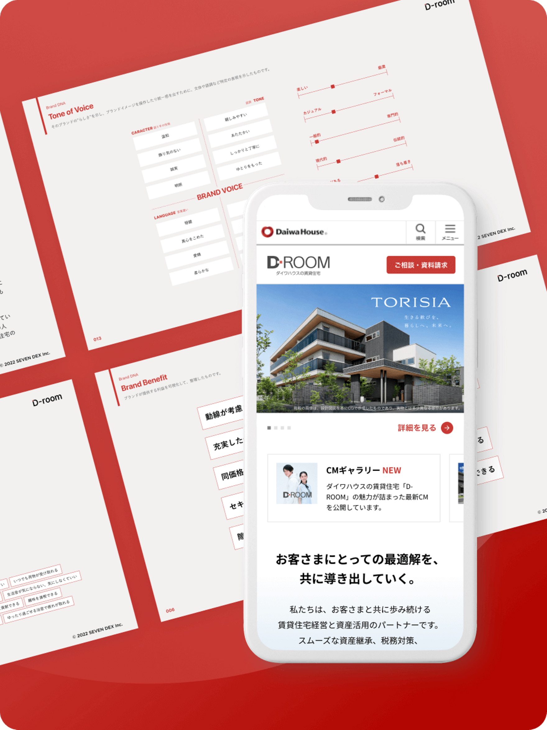 住宅・建設・不動産分野で国内最大規模の売上高を持つ大和ハウスグループ。同グループが展開する賃貸住宅ライン「D-room」全体のブランド戦略刷新を、セブンデックスが担当しました。