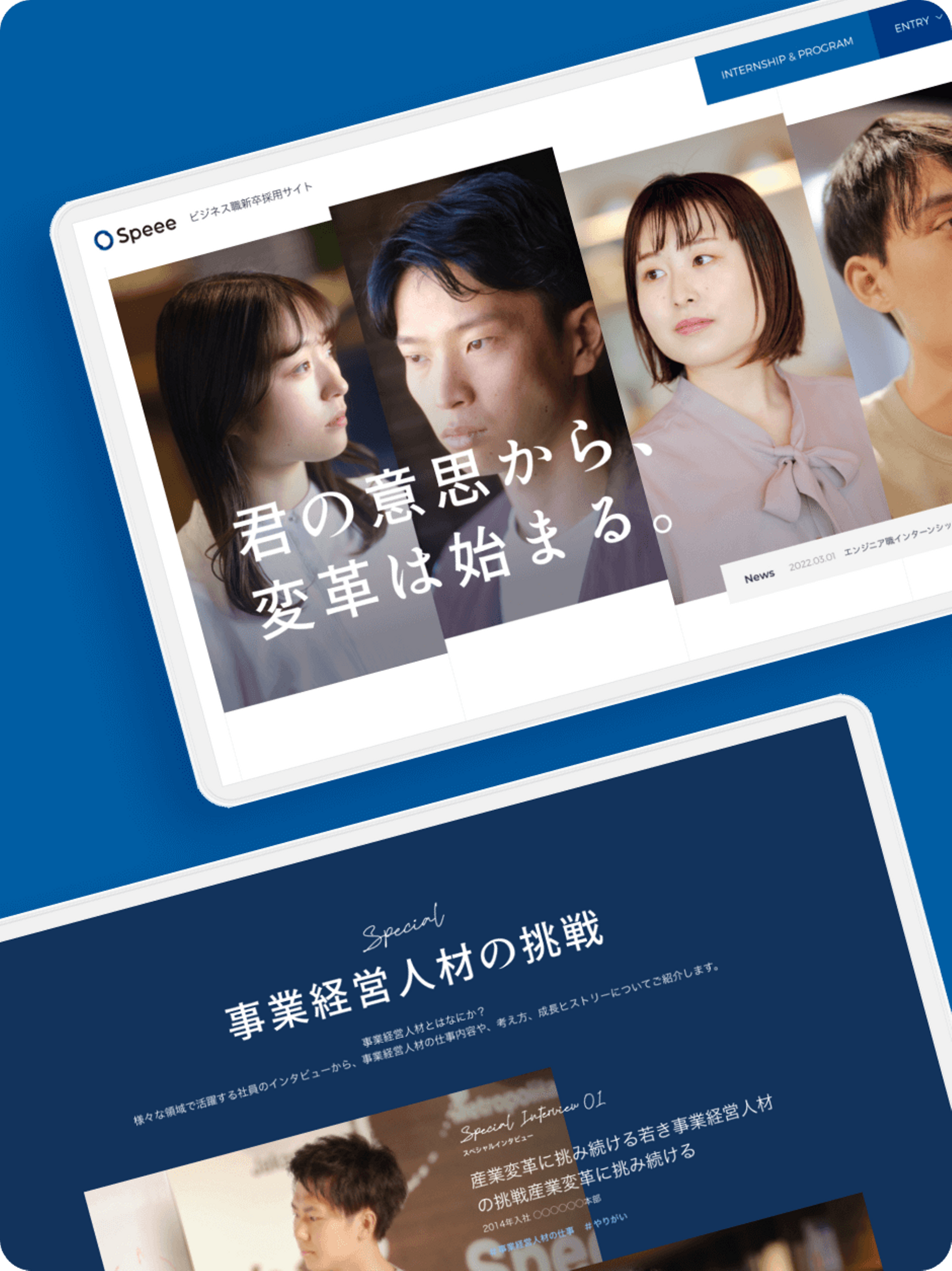 株式会社Speee様の新卒採用強化にあたり、採用戦略の策定からブランドイメージの明確化、戦略を実現する採用サイトの制作まで一気通貫でのご支援を行いました。