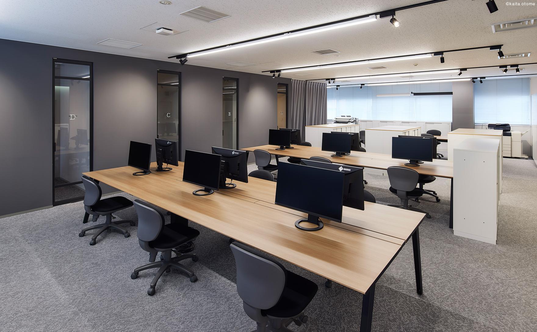 豊富な照明商品で豊かな環境・空間・体験を創造しているYAMAGIWAのオフィスのリニューアル計画。3フロアある執務空間の改修を担当した。