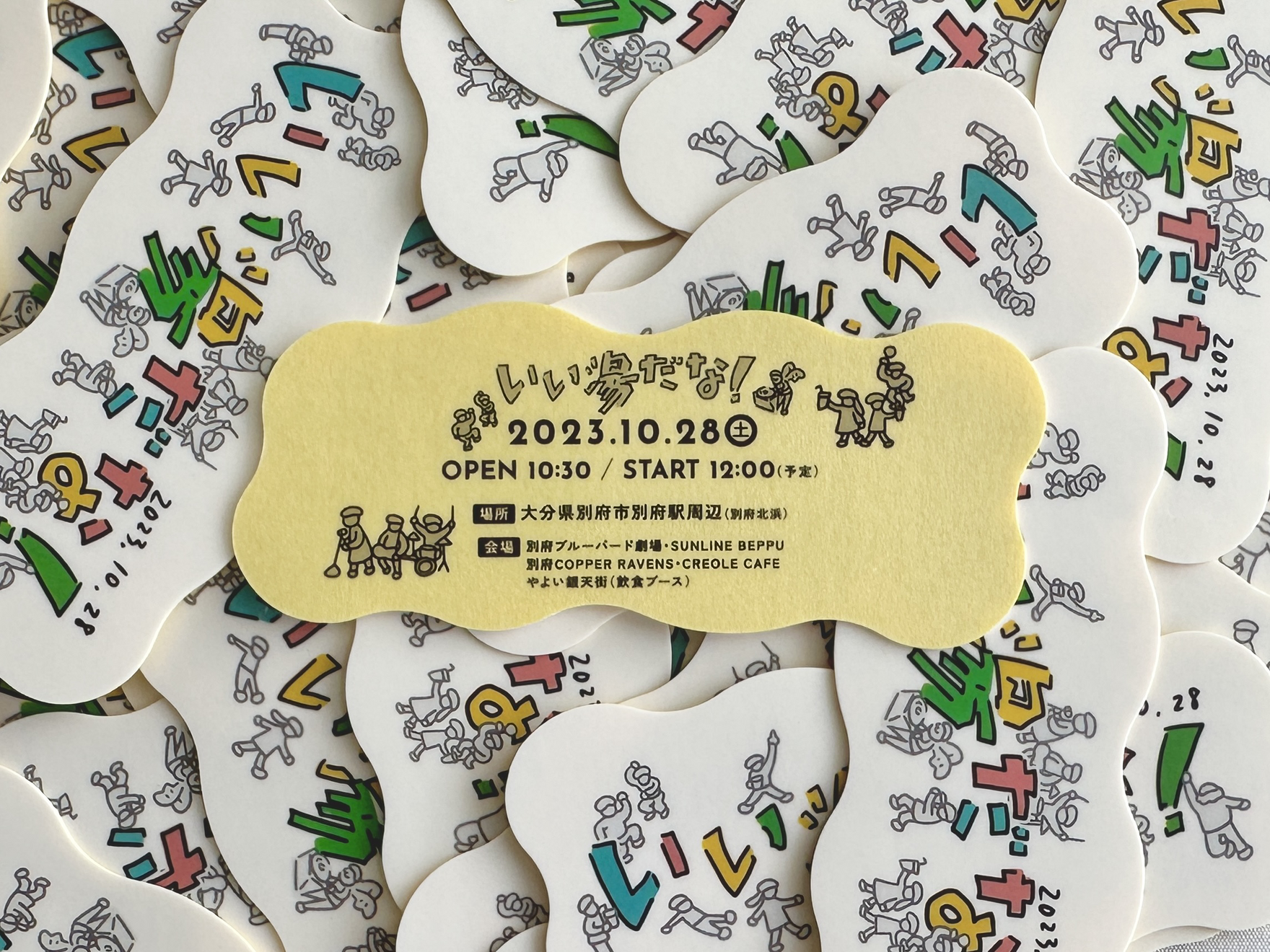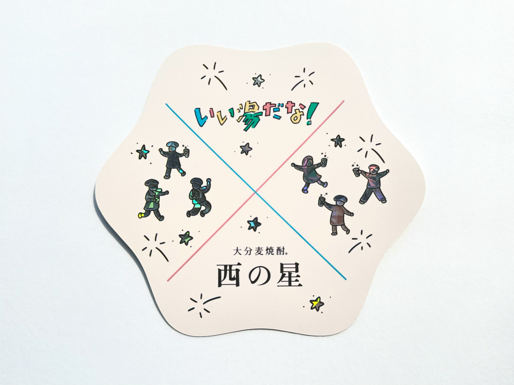 2023年10月28日土曜日に大分県別府市で開催された『おんせん都市型音楽祭 いい湯だな!』の来場者限定ステッカーと、参加者プレゼント「湯おけ」の底面に貼るステッカーを製作いたしました。なお、イベントトップパートナー三和酒類株式会社 様の焼酎「西の星」とのコラボになります。