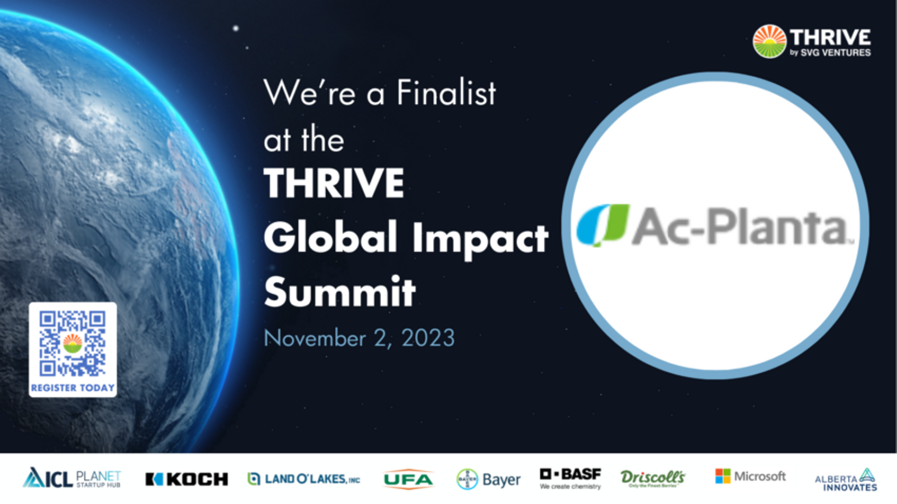 11月に米カリフォルニアで開かれるアグリテックベンチャーの国際ピッチコンテスト「THRIVE Global Impact Challenge」の決勝ステージに、アクプランタの出場が決まりました。