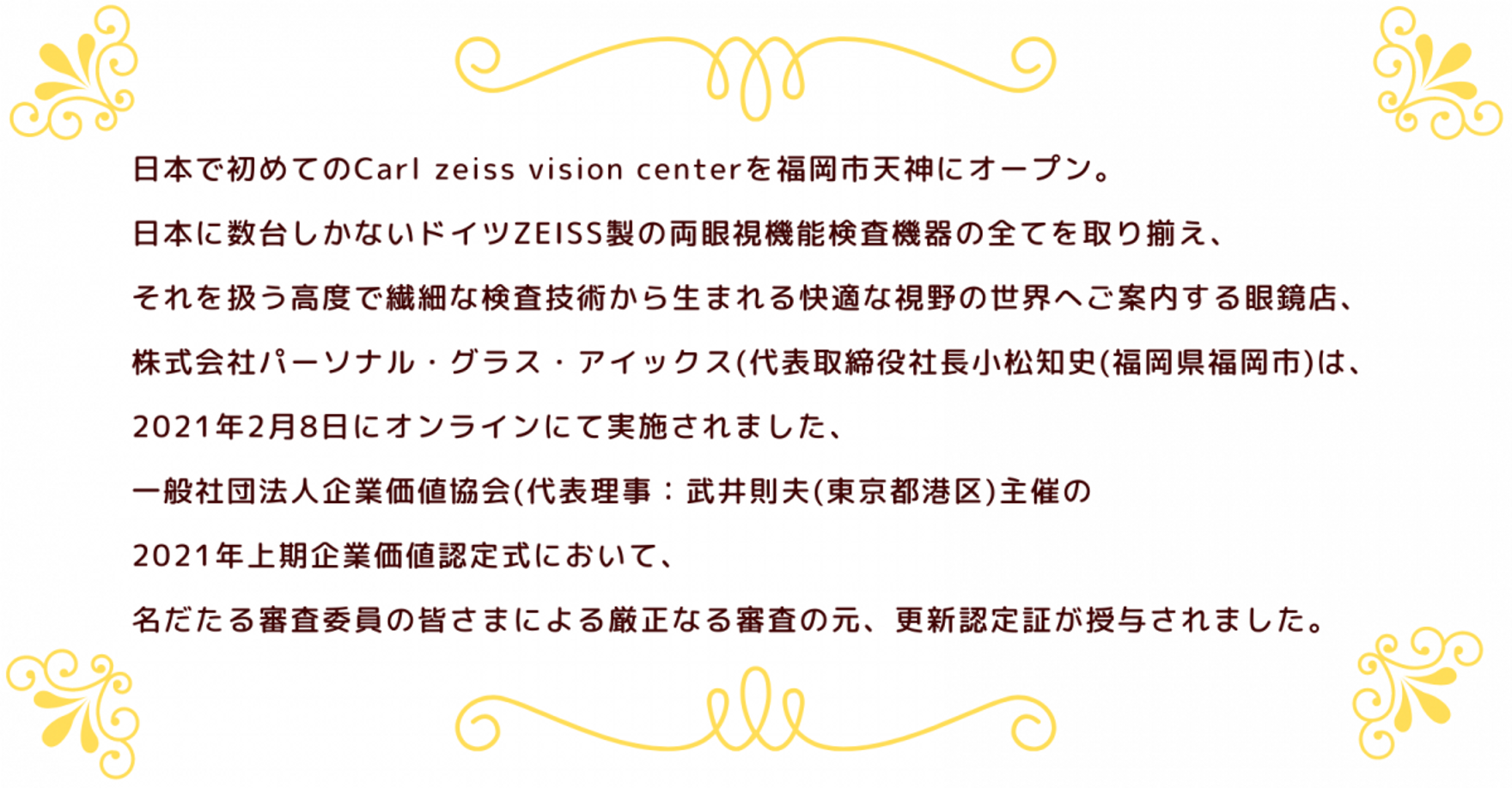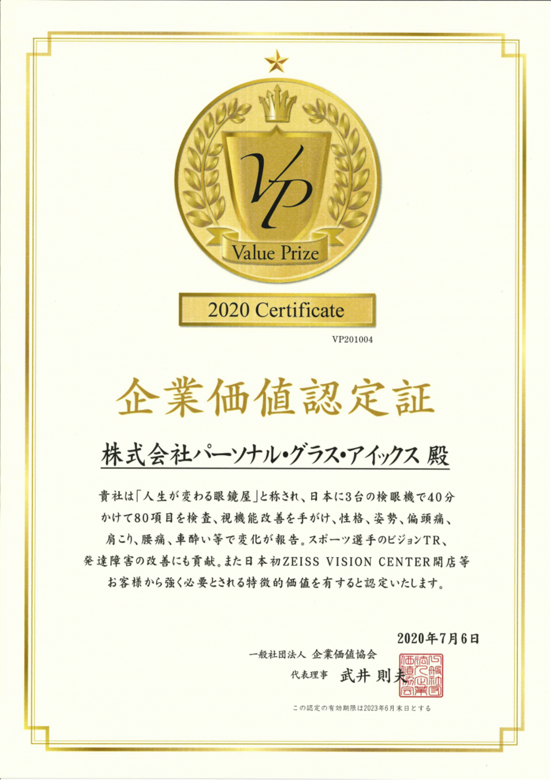 企業価値協会に認定いただきまして、大変感謝致しております。