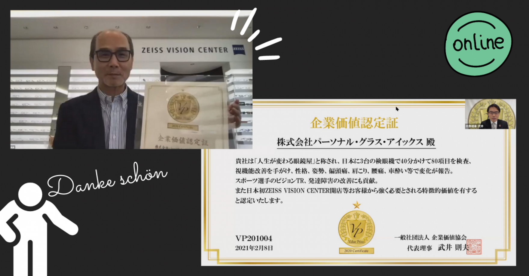 今月8日にオンラインにて実施されました、一般社団法人企業価値協会主催の認定式において、