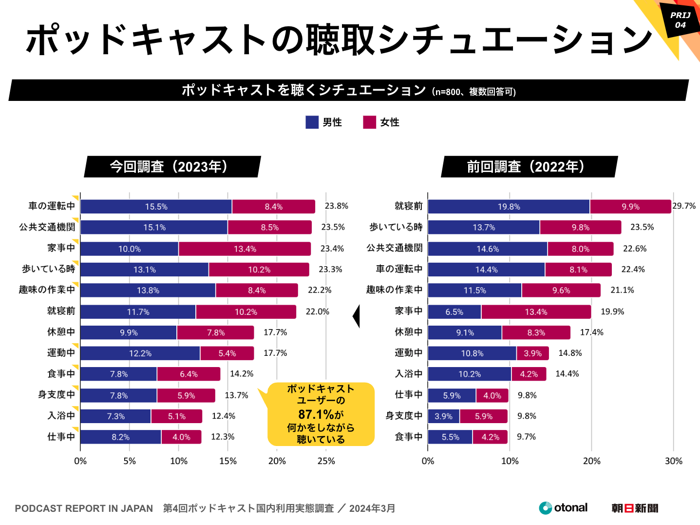 ・ユーザーのうち87.1%が、車の運転中や家事中など “ながら聴き” をしている。