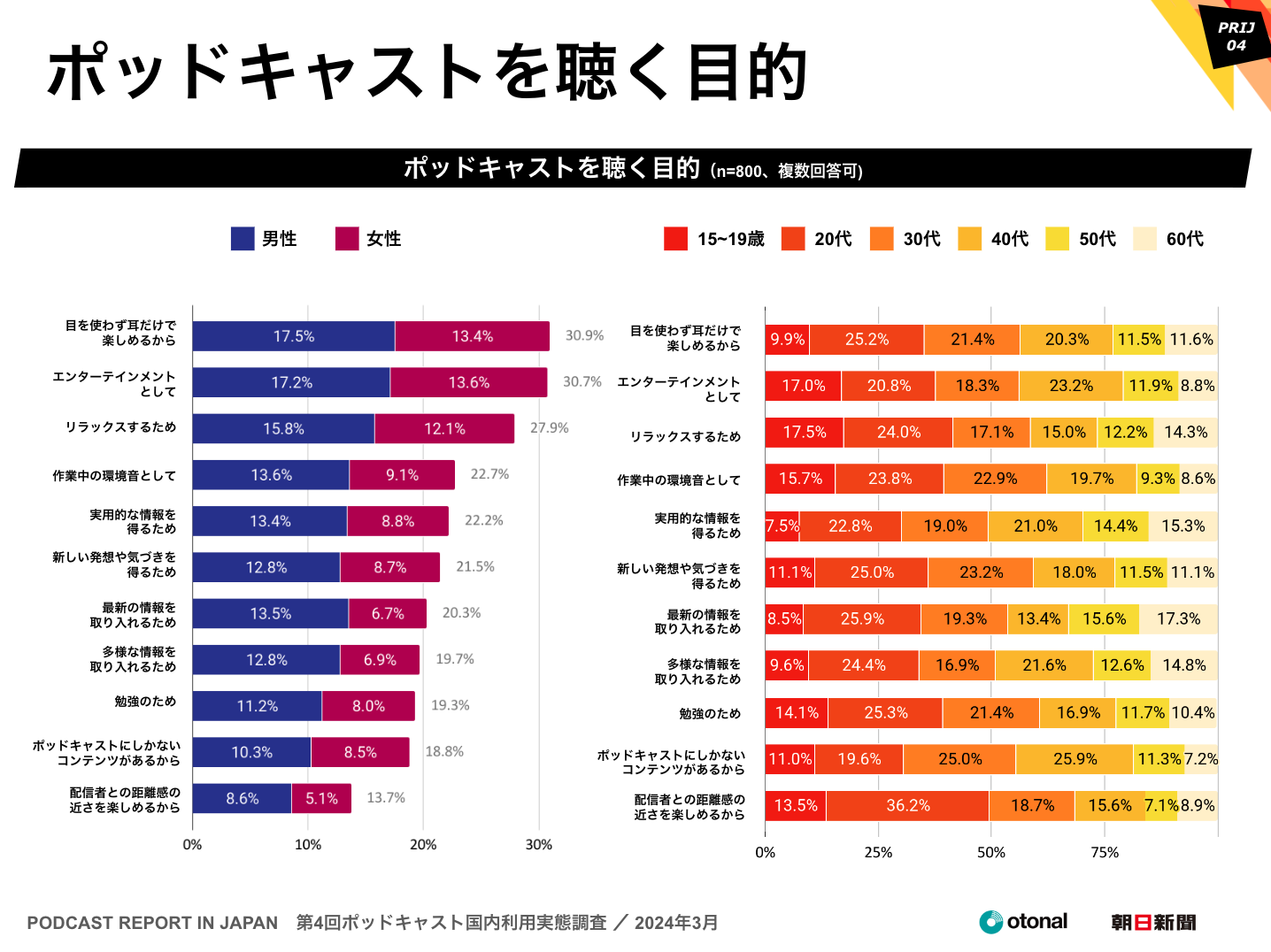 ■それぞれの年代で異なる、ポッドキャスト聴取の目的