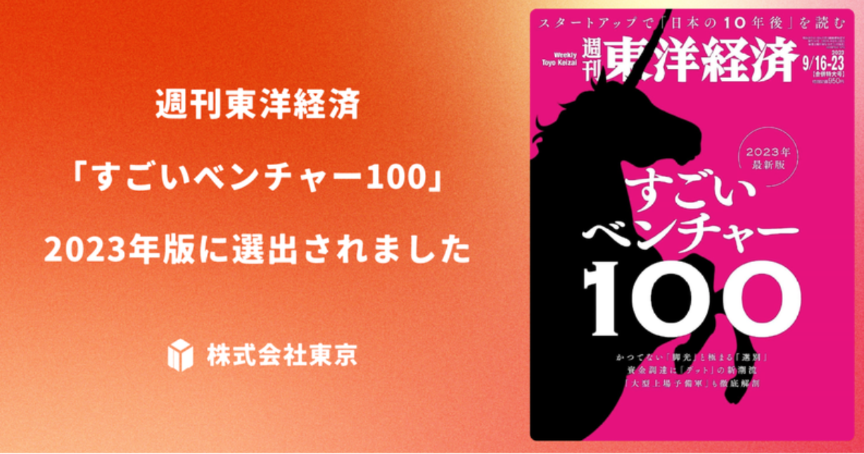 「すごいベンチャー100」は東洋経済新報社が、ユニコーン(設立10年未満で、評価額10億ドル以上の未上場企業)を目指して事業活動を行う国内ベンチャー企業を対象に、資金調達額の大きさ、事業・技術の独自性などを基準に有望な100社を選定する年次の特集です。