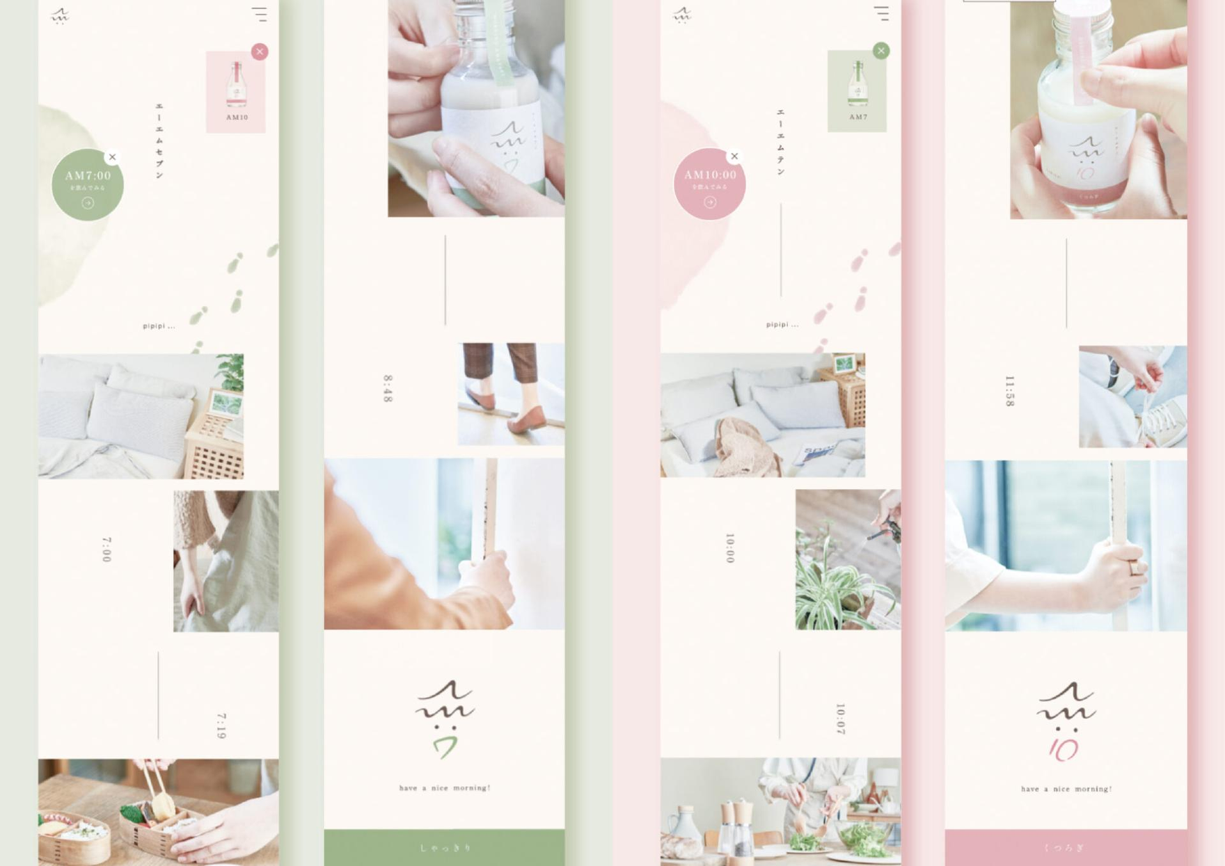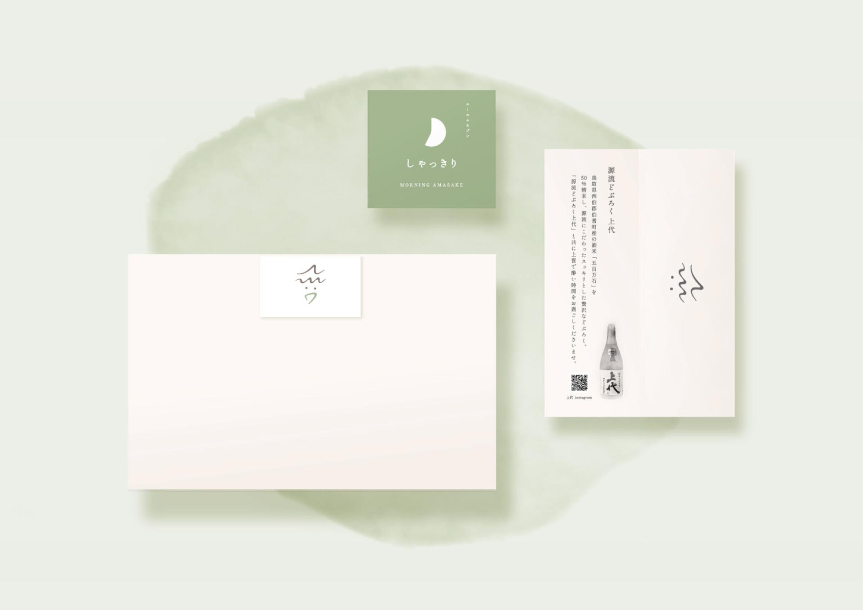 【2023年度グッドデザイン賞受賞】鳥取県にある酒蔵、株式会社上代の事業承継に伴い、甘酒の新ブランド「AM」のブランディングを担当しました。ブランドアイデンティティのみならず、初期のマーケティングや市場分析、対象商材の選定に至るまで、幅広く支援させていただきました。「AM」は「朝専用」がコンセプトの甘酒です。起き抜けに飲んでもくどくない控えめな甘さのドリンクに、アミノ酸やオリゴ糖、消化酵素など朝に摂りたい栄養素がたっぷり。飲用シーン(時間帯)に合わせた2種類のスタイル「AM7」と「AM10」が、飲む人の健康と気分を高めます。