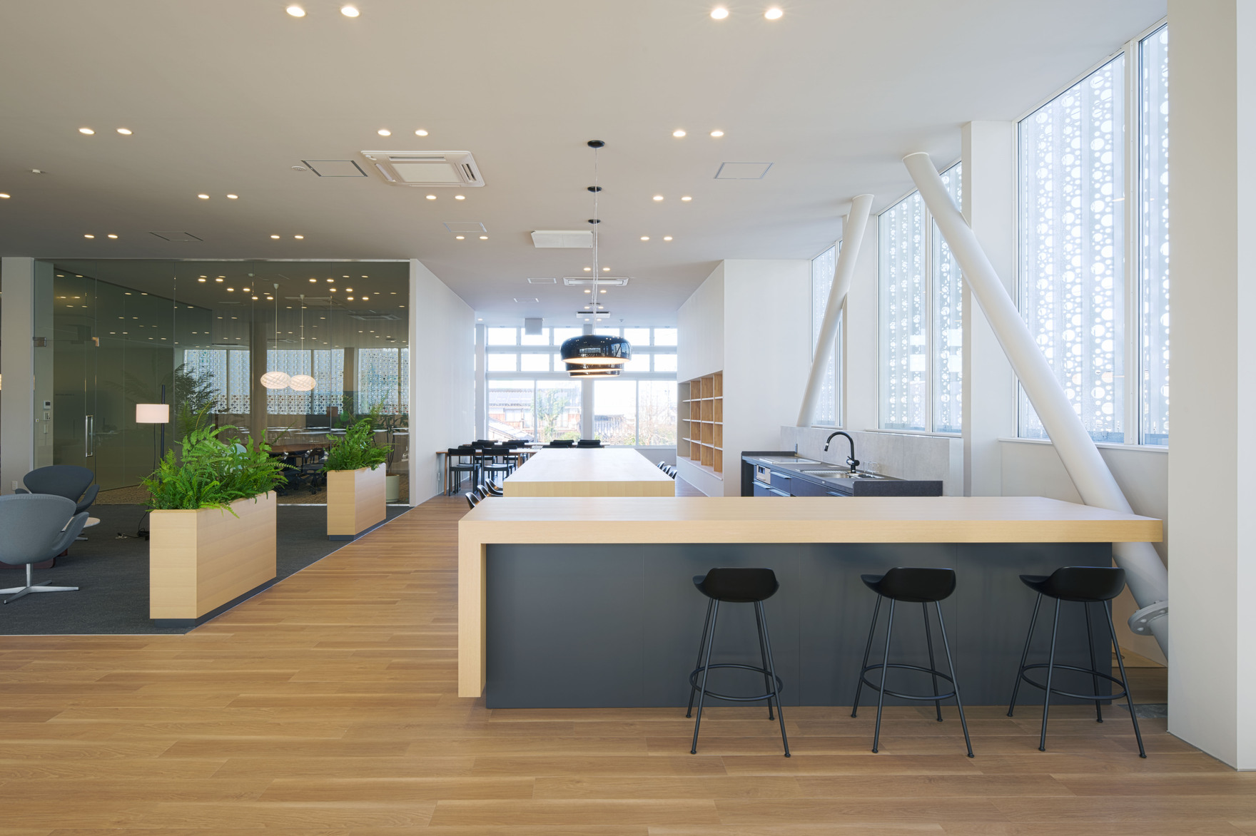 新オフィスが完成しました!社員が働きやすい環境を整え、ZEB認証を取得、省エネルギーにも取り組んでいます。