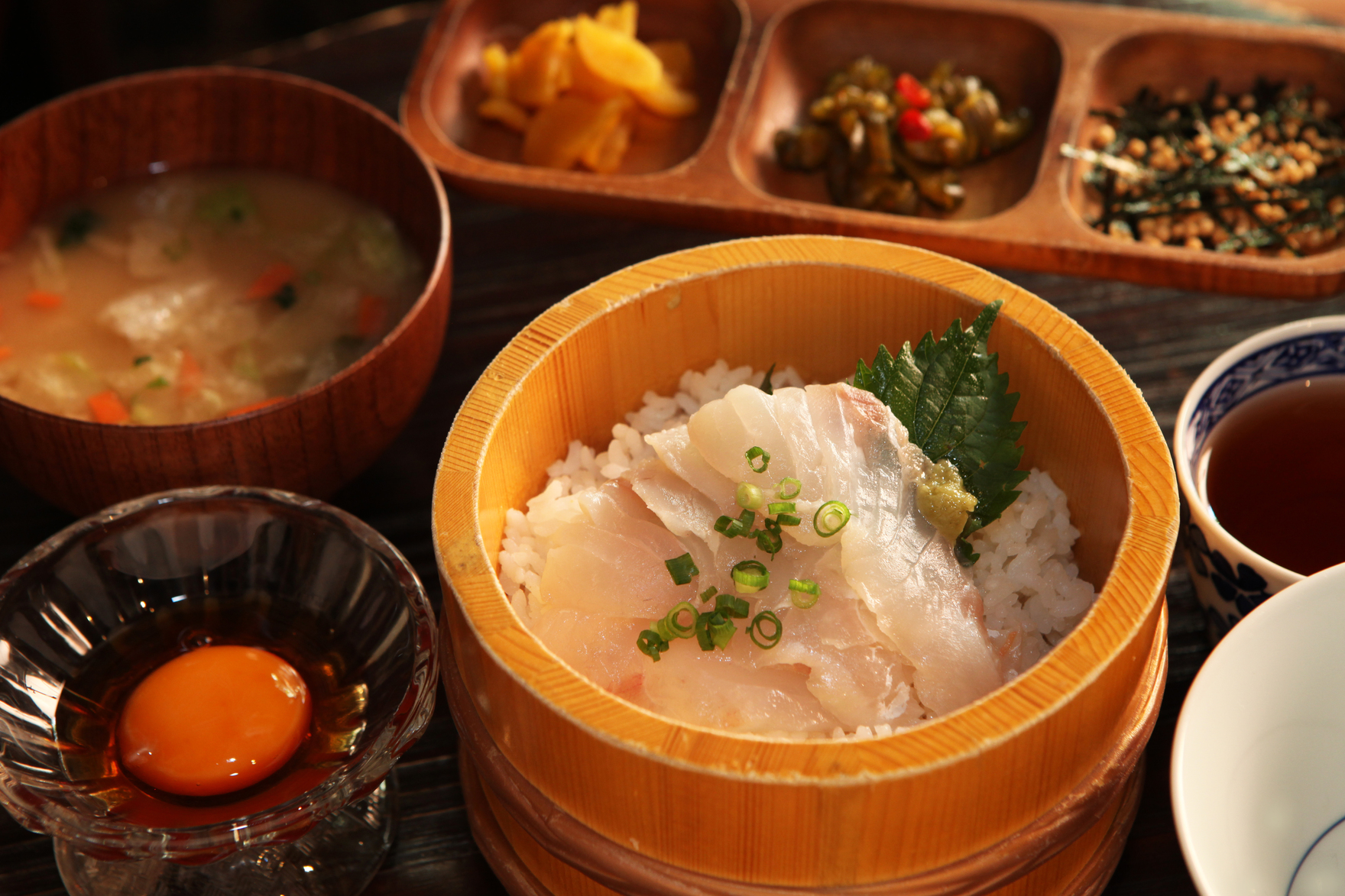 ・岡山特産の黄ニラのお醤油、岡山産の自然栽培米、倉敷産の卵を使った、たまごかけごはん