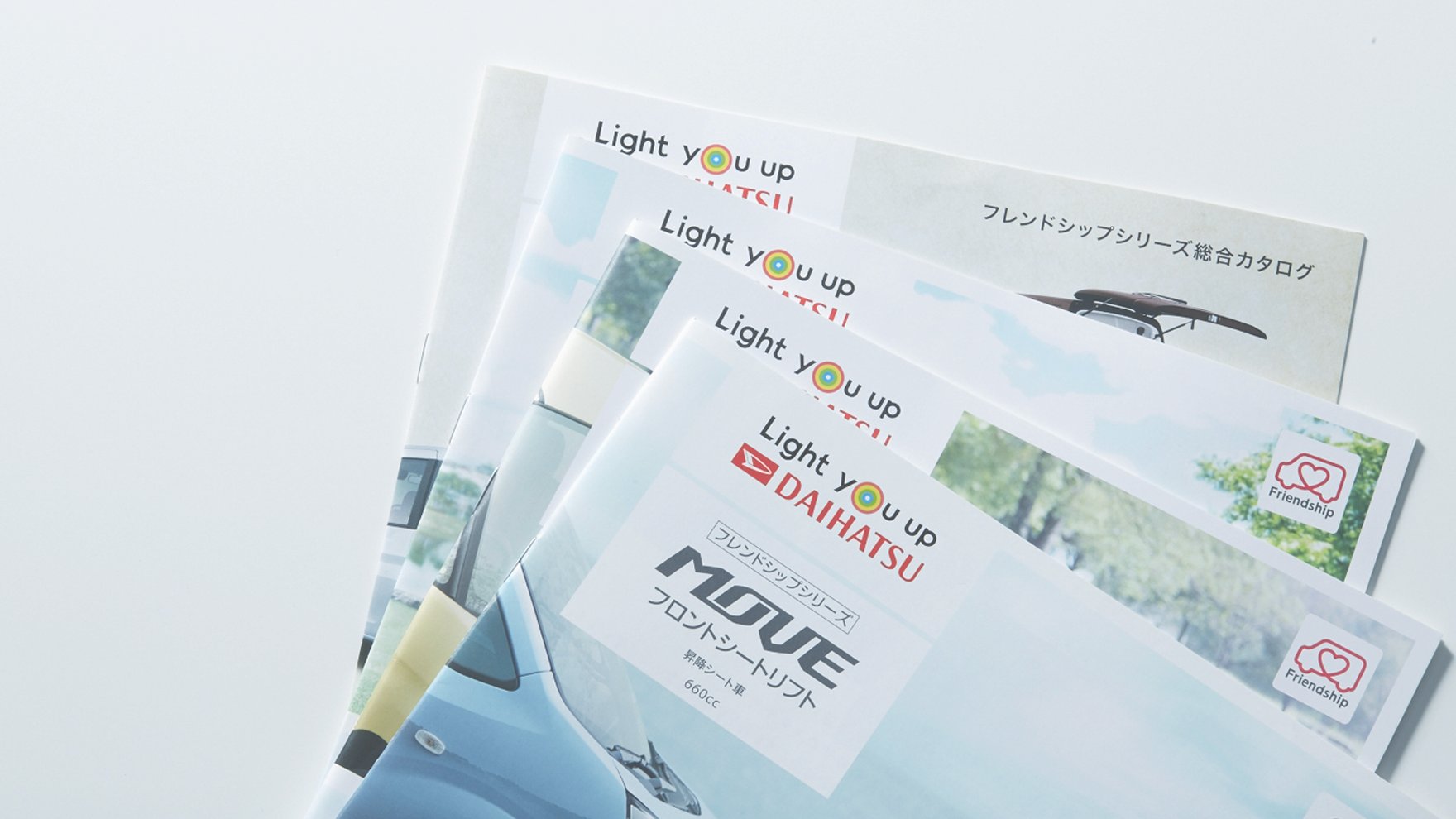 カタログ制作にあたって、福祉車両の存在意義を「身体の不自由さを補うクルマ」から「暮らしを豊かにするクルマ」と定義し直しました。福祉車両へのネガティブな特別感のイメージを払拭することによって、福祉車両が世の中に当たり前に存在できる社会を見据えています。そんな社会の中で身体的に不自由な方や高齢の方などの利用者が行きたいところにより行きやすくなり、人生の可能性が広がっていく。暮らしがより豊かになっていくような、一歩先のライフスタイルの提案を行いました。