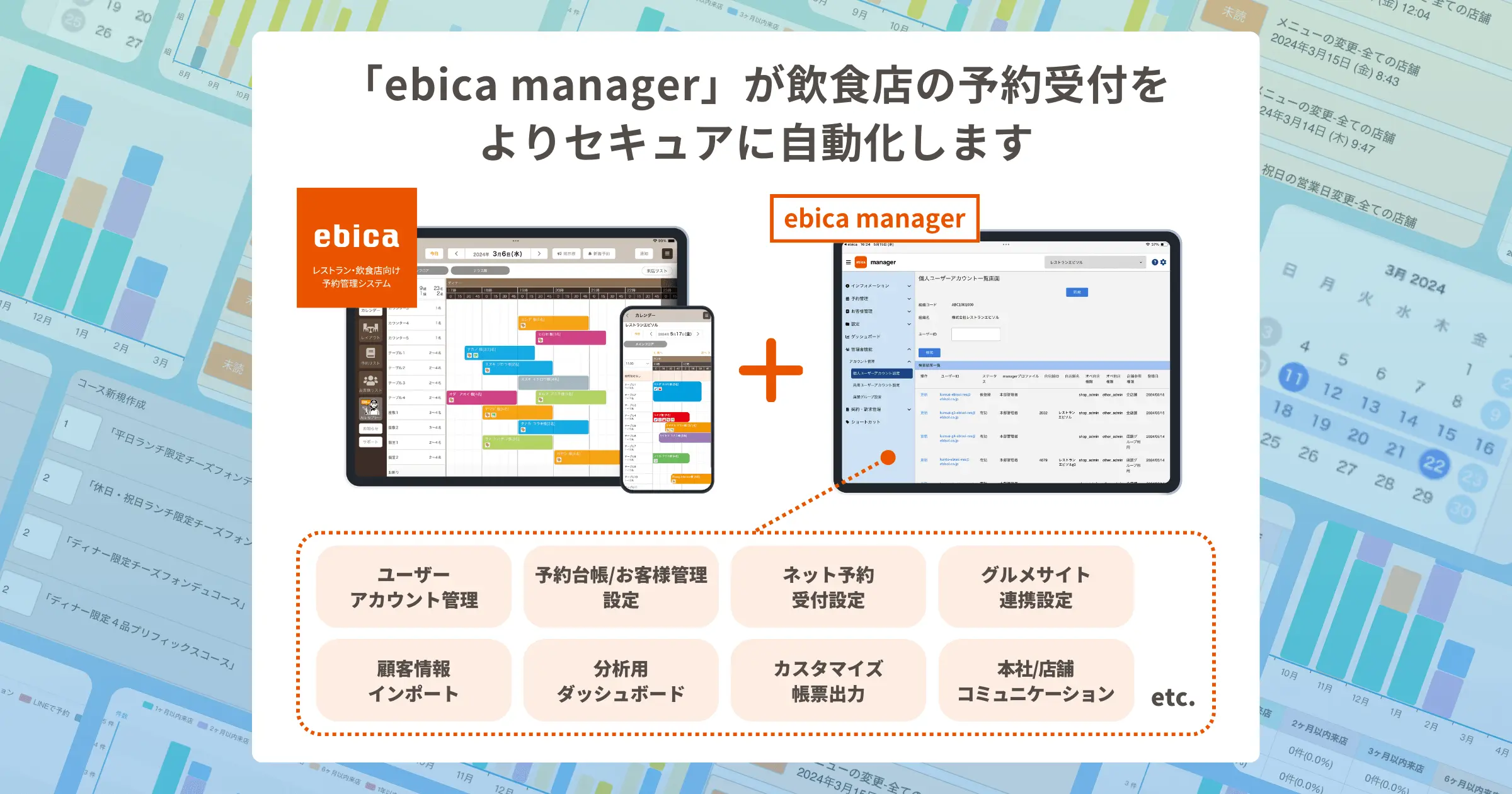 🔳飲食店向け予約管理システム「ebica」、新機能「ebica manager」をリリース 2024.05.21