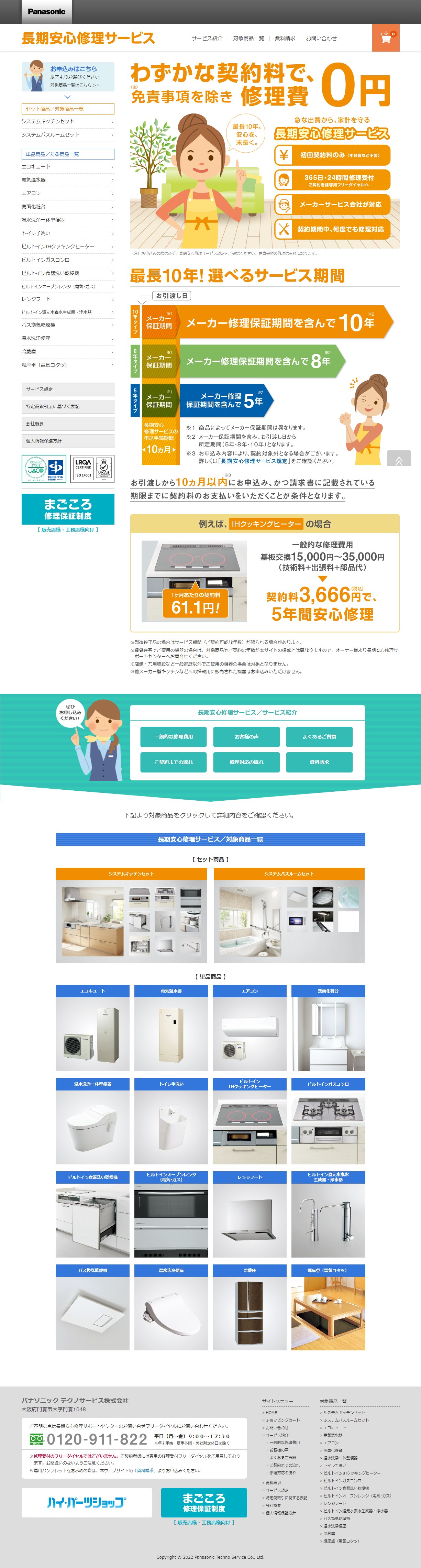 長期安心修理サービスは、対象のパナソニック商品が故障した場合に、ご契約の規定とサービス期間に応じて無料修理を行うサービスです。パナソニック テクノサービスが運営しています。