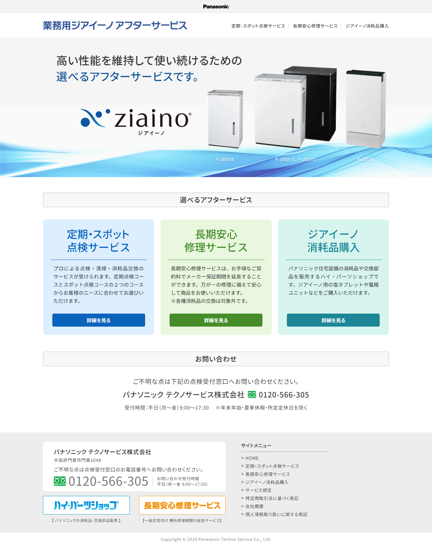 プロによる定期点検・清掃と各種消耗品の定期交換、無料修理を含むアフターサービスや