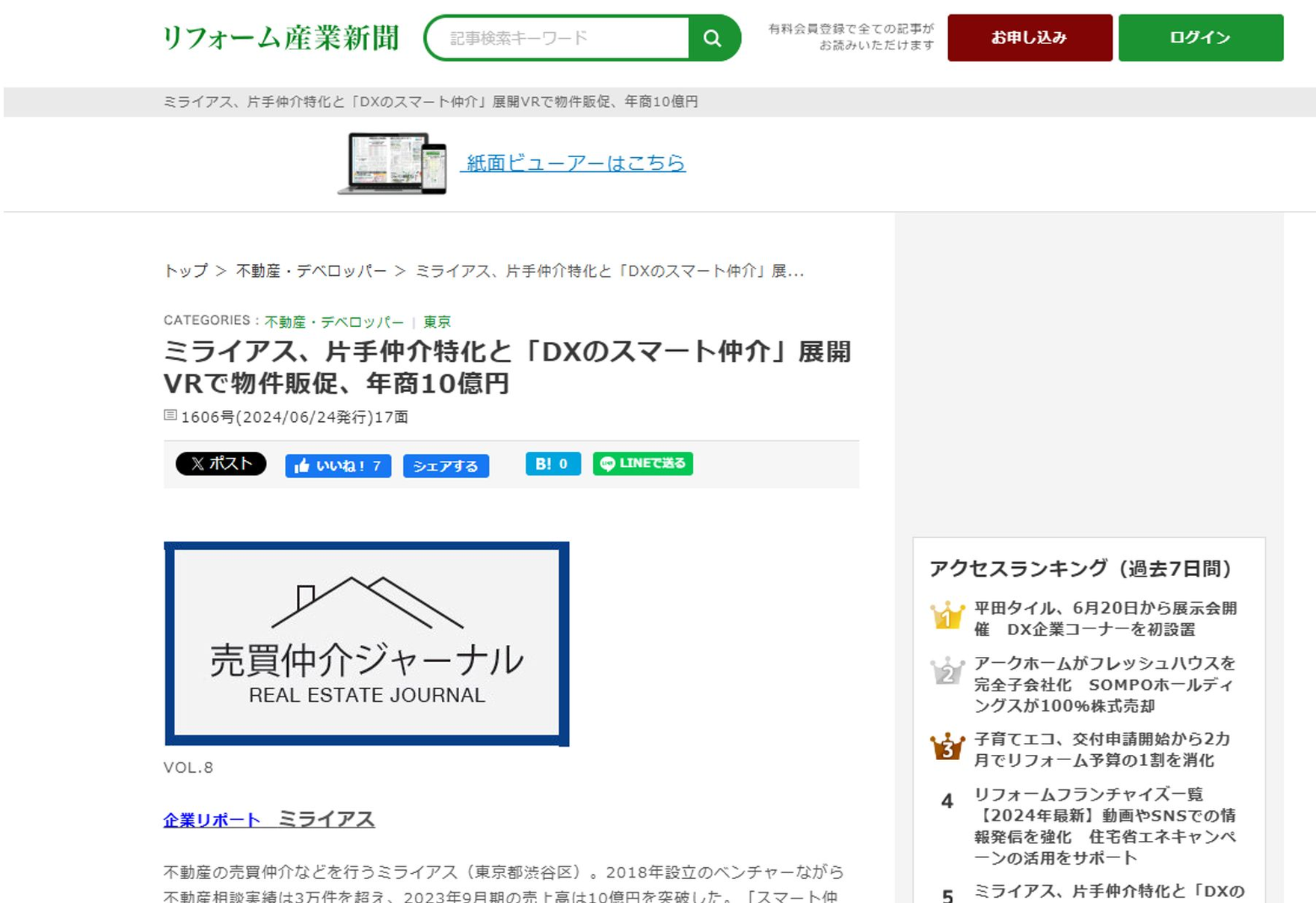 2024年6月24日発行の 「リフォーム産業新聞」に当社の特集記事を掲載いただきました