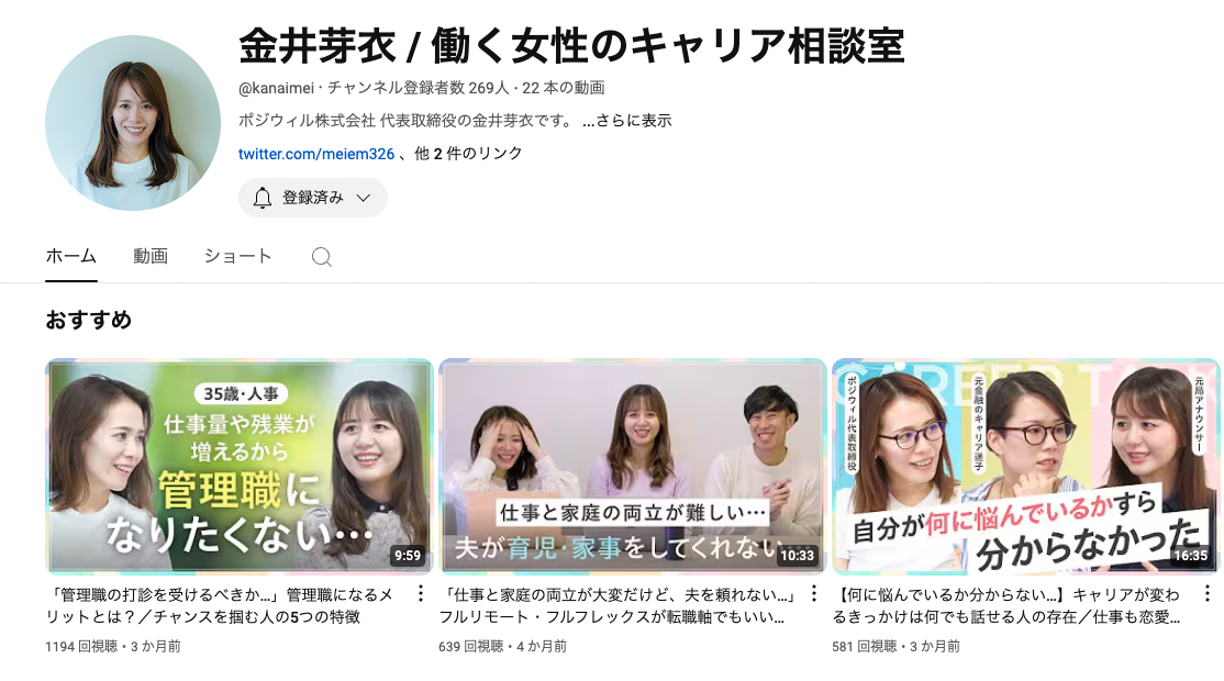 YouTube(金井芽衣 / 働く女性のキャリア相談室 )
