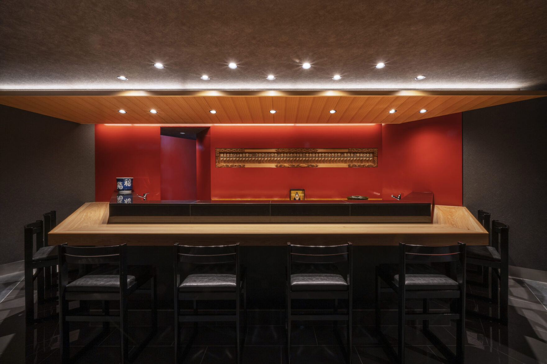 創業100年を超える老舗鮨屋の店舗内装設計。伝統ある店の雰囲気を引き継ぎながら、