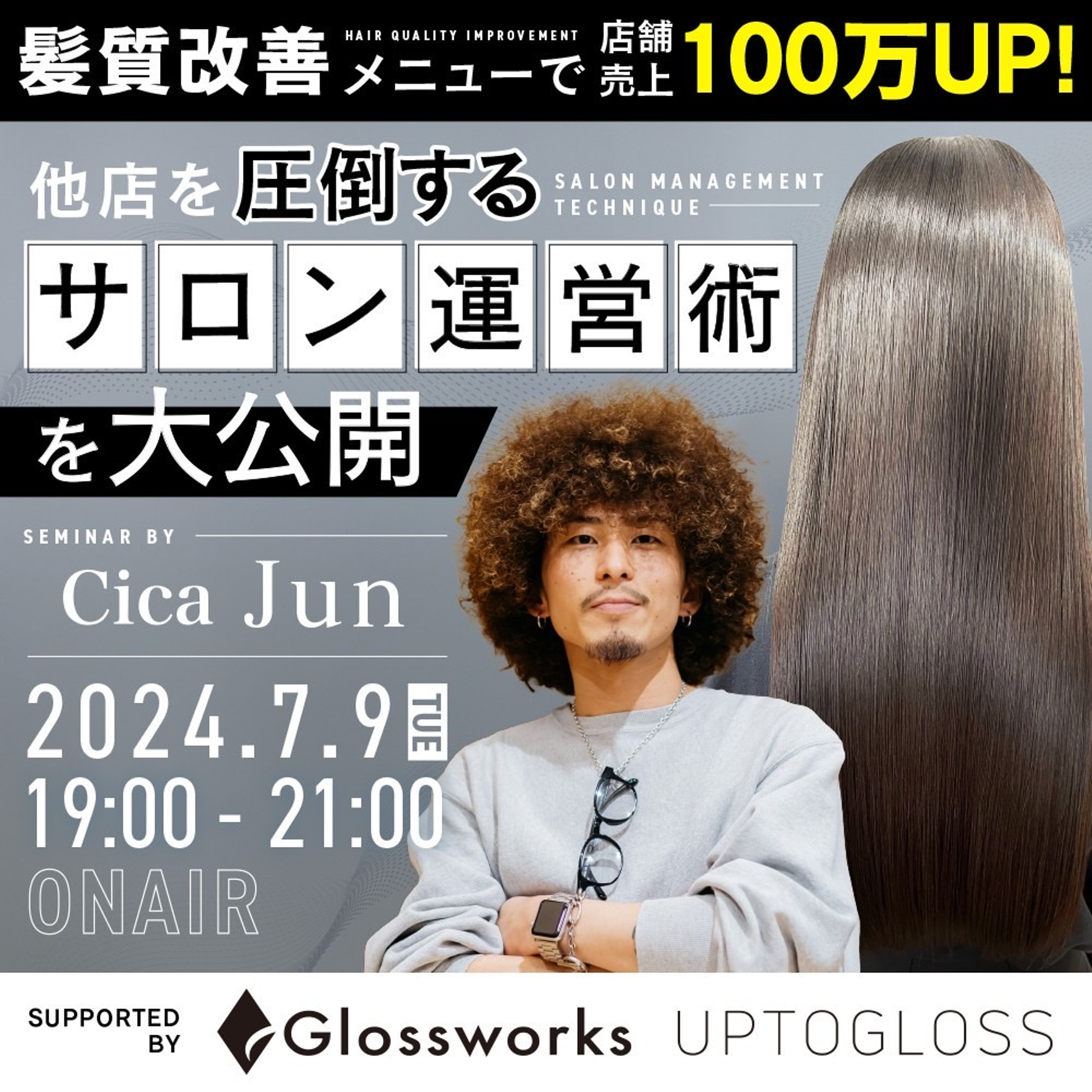 MonopolyのJun様にご出演いただき、UPTOGLOSSを活用して他店を圧倒するサロンの運営術と題してLIVE配信させていただきました。