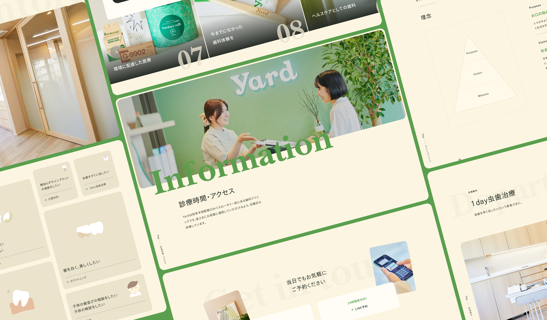 Yardは、これまでよりさらに質の高い歯科医療を提供することを目指し、新しい時代の歯科クリニックとして2024年に開業しました。開業にあたり、Seaではブランディングパートナーとして、ネーミングおよびロゴなどのアイデンティティ構築や理念策定、クリニック内外装のデザインディレクション、クリニックサイト、デジタルサイネージ、屋外広告、アメニティパッケージ、ポスターの制作を担当しました。