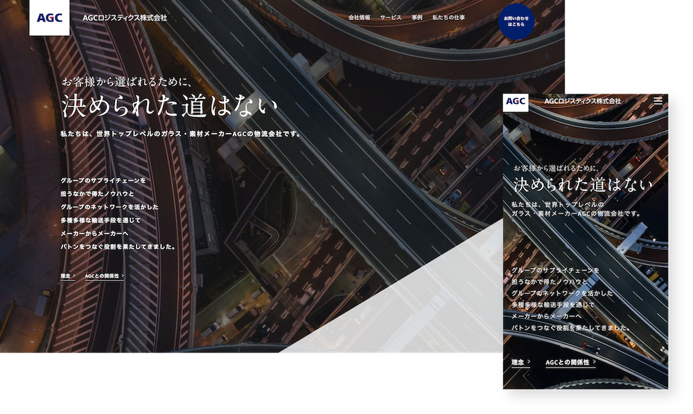 「選ばれるために挑戦し続ける」「脈々と培ってきた輸送ノウハウ」「グループのネットワークを活用した多種多様な輸送手段」など、それらを経て明文化されたAGCロジスティクスのビジョンや強みを軸として、コピーやヴィジュアル、コンテンツを制作していきました。