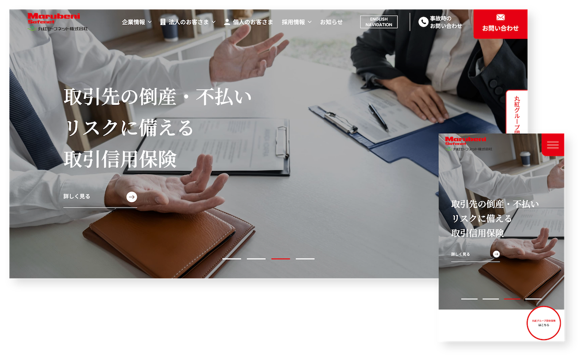 総合商社丸紅が展開する保険代理店、丸紅セーフネット株式会社。丸紅グループが持つ幅広いネットワークを活かし、最適なリスクコンサルティングを行っています。ロゾパンサンでは、コーポレートサイトのリニューアルを担当しました。