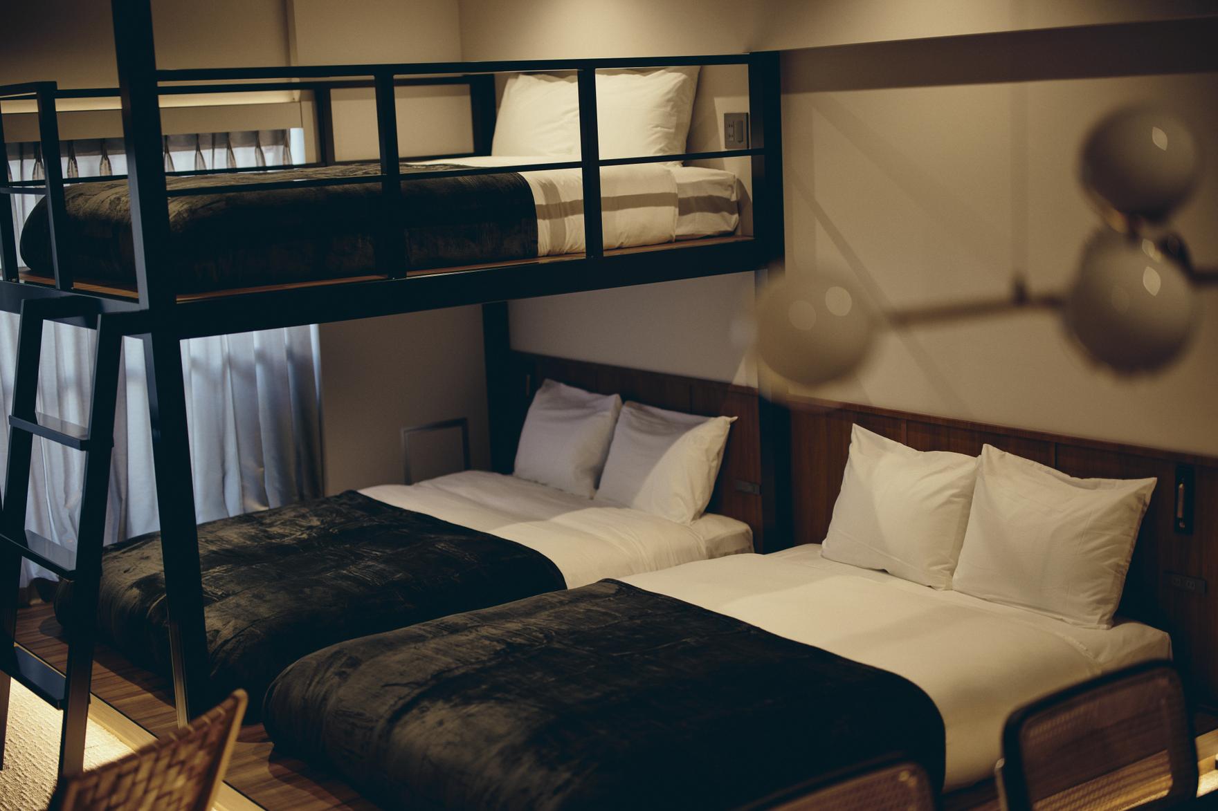 自宅のようにくつろげるデザインとホテルのサービスを融合させています。施設内はスマートチェックインシステムを採用しており、無人ホテルならではのスムーズなチェックイン体験が可能です。客室は、家族向けの広々としたお部屋をご用意しております。
