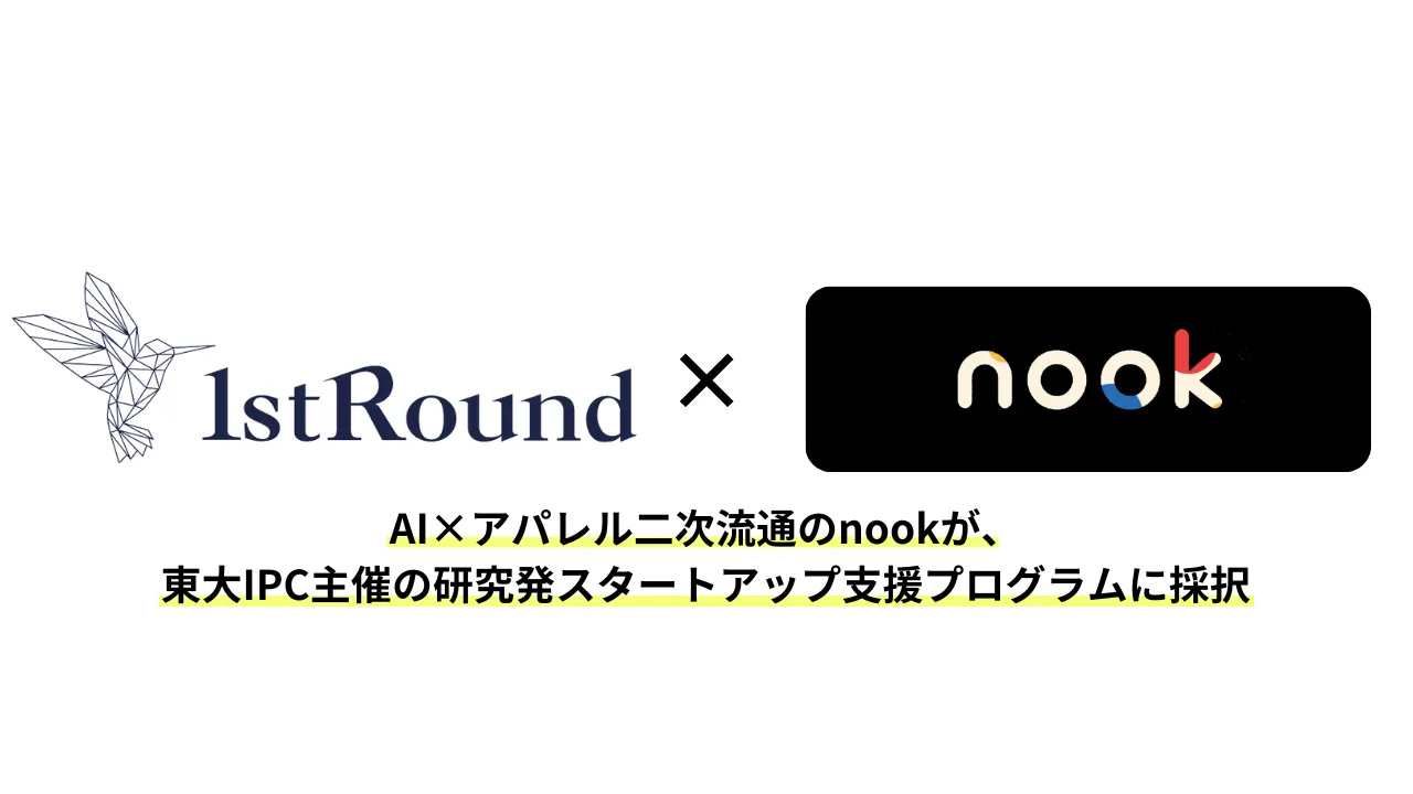 nook株式会社(本社:東京都渋谷区、代表取締役:熊澤龍生、以下「nook」)は、東京大学協創プラットフォーム開発株式会社(本社:東京都文京区本郷、代表取締役社長 植田浩輔、以下、「東大IPC」)が運営する国内最大規模を誇る複数大学共催の起業支援プログラム「1stRound」の第10回支援先として採択されました。