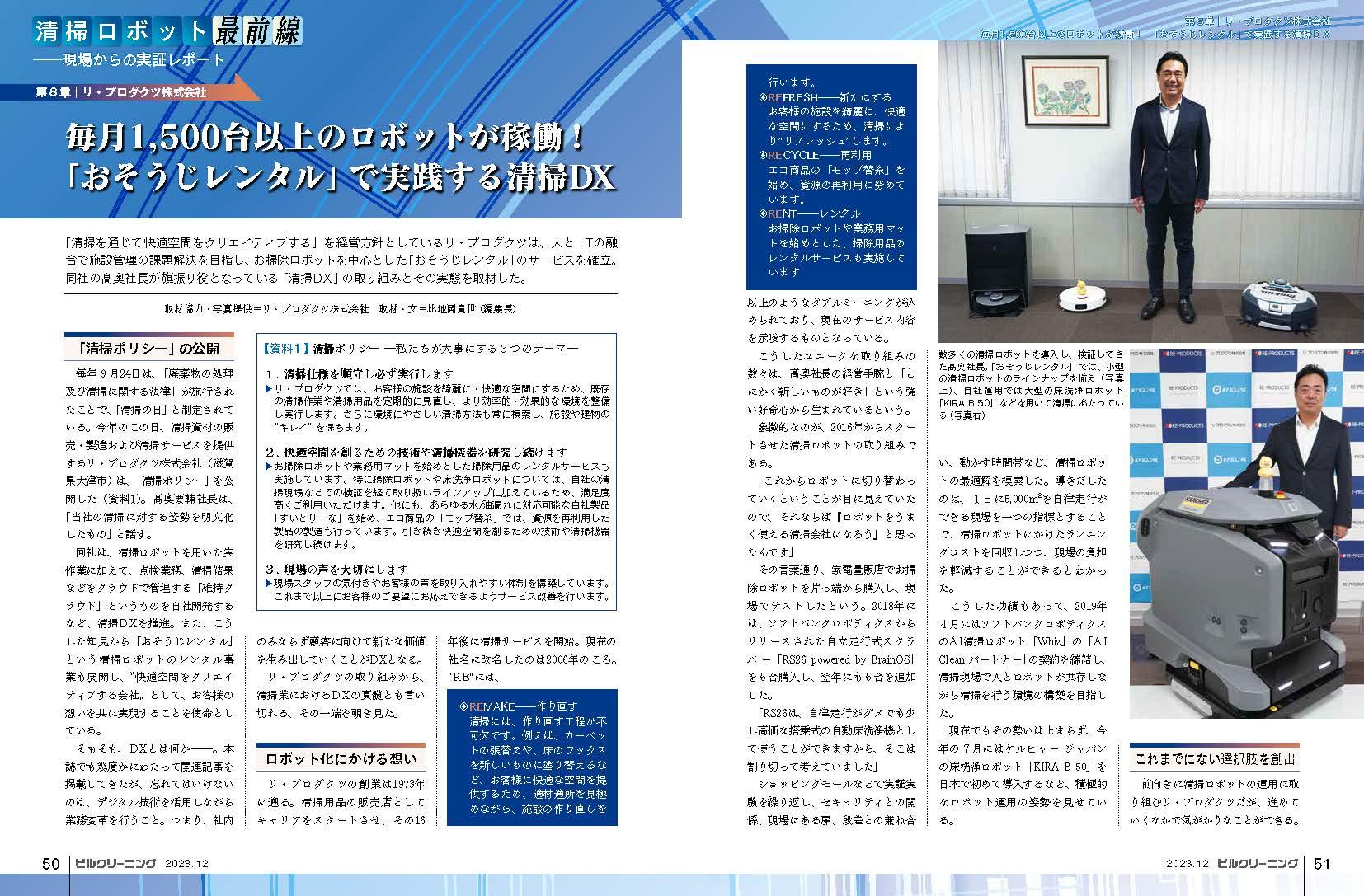 清掃業界では少子高齢化による人手不足が深刻です。そうした人手不足や清掃コスト、効率化の課題を解消し、品質を向上させるべく、ビルメンテナンス会社としてのノウハウとITシステム・ロボットをかけあわせた「清掃DX」を現実化できている会社として掲載いただきました。
