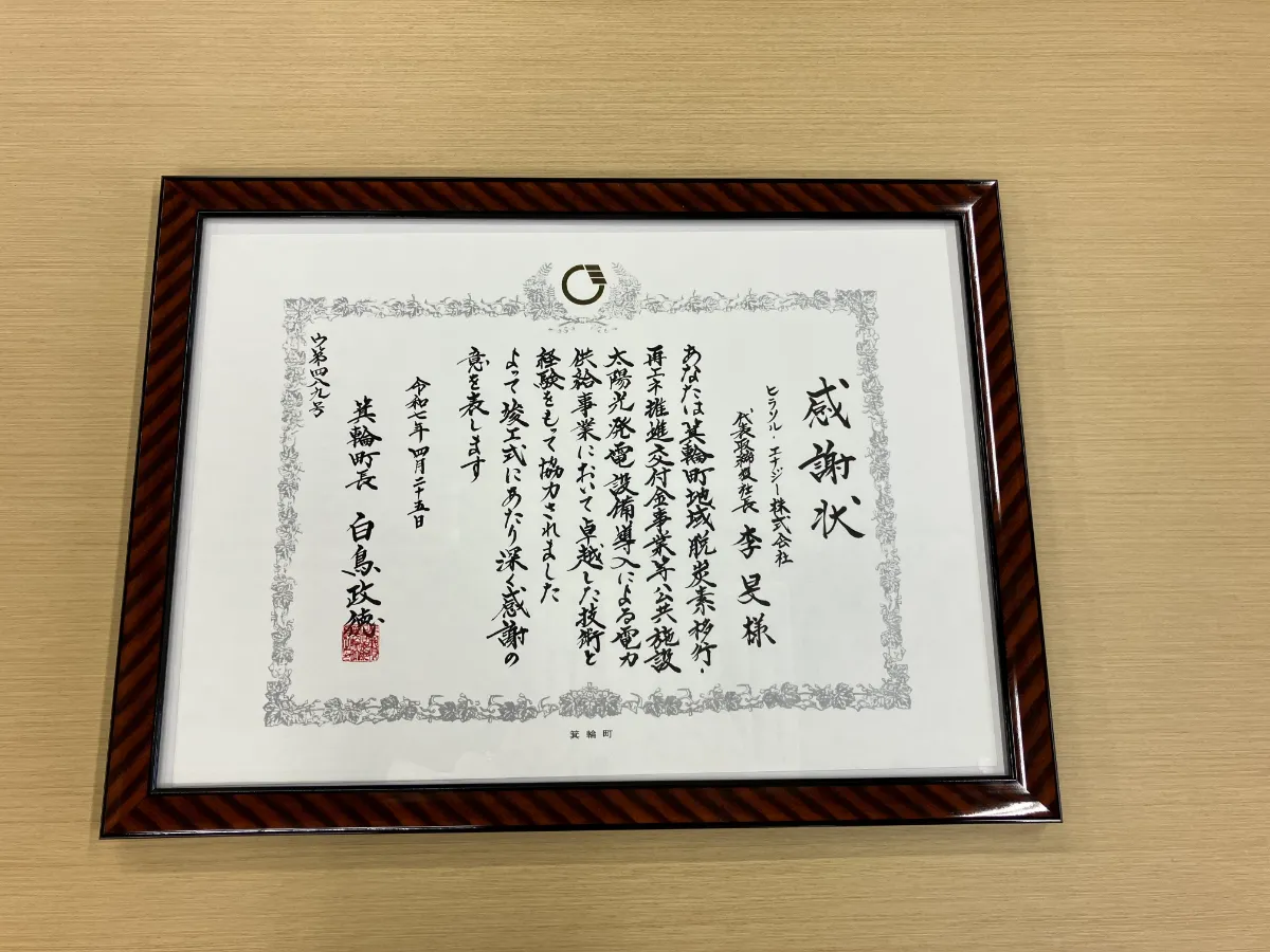 2025年4月25日には箕輪町にて竣工式が執り行われ、当社は箕輪町より感謝状をいただきました。今後もデジタル技術を活用し、地域における分散型太陽光発電と関連する脱炭素化の取り組みの支援を加速してまいります。