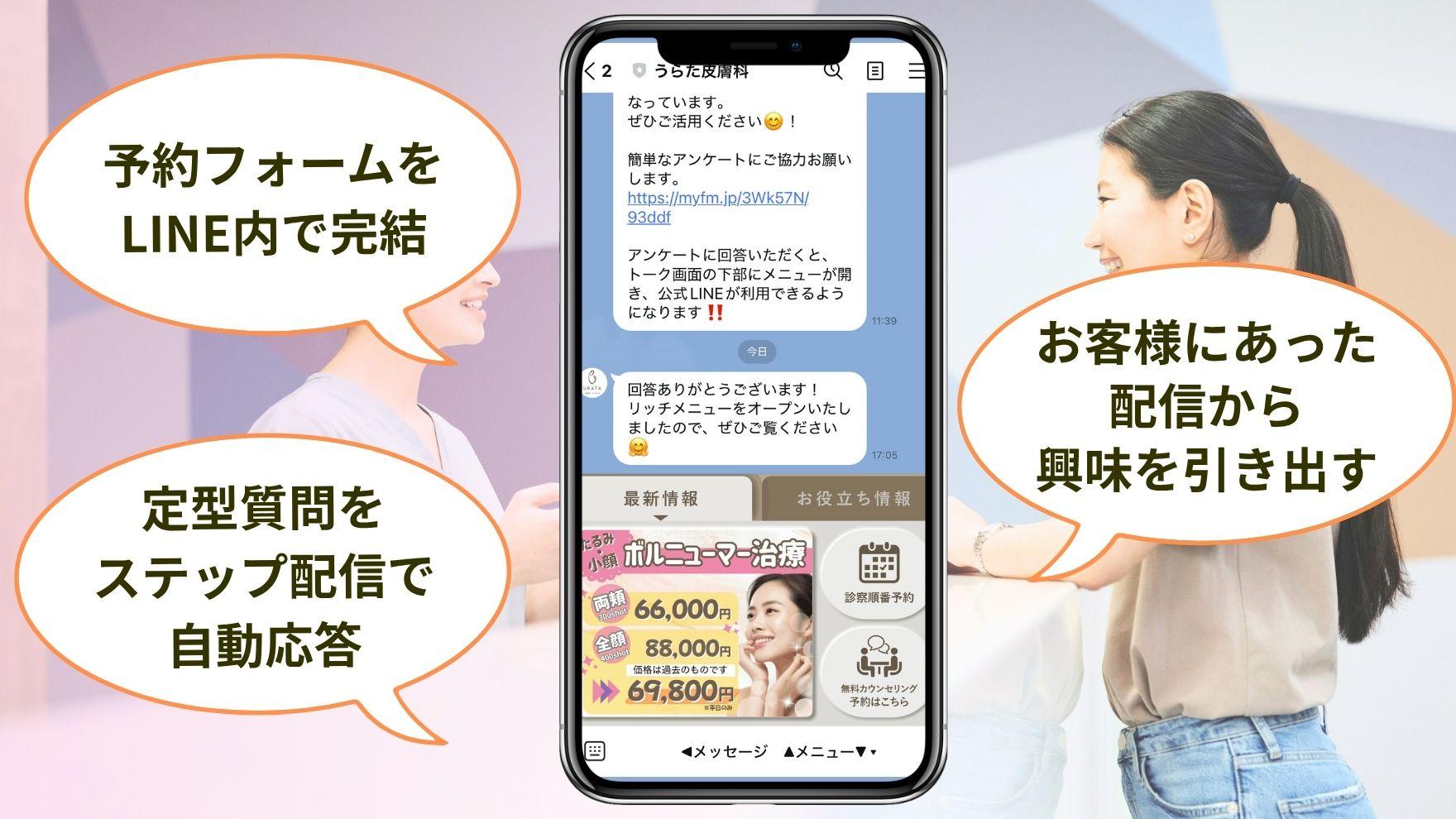 うらた皮膚科様では、Lステップを使ってLINE予約の自動化に成功した例を紹介します。