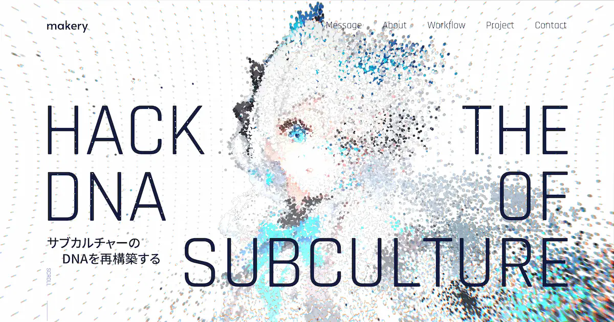 サブカルチャーをDNAの塩基配列と見立てて、コンセプトの「生まれ変わる」をパーティクルの再構築で視覚的に伝えようとしました。
