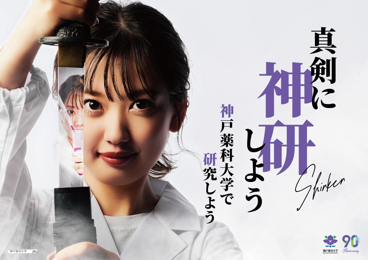「真剣に神研しよう 神戸薬科大学で研究しよう」をコンセプトにした神研プロジェクトの第3弾では、「真剣【SHINKEN】」「神研【SHINKEN】」に続き、3つ目の【SHINKEN】として「刀の真剣【SHINKEN】」をモチーフにして企画しました。