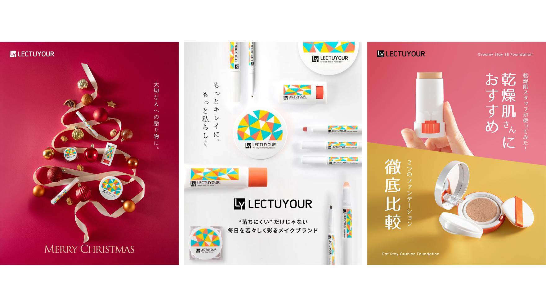キレイが落ちない”がコンセプトのメイクブランド『レクチュア』をより魅力的に伝えるため、商品を使った女性スタッフによるメイク企画や、プロのカメラマンによる商品撮影、クオリティを維持した投稿画像のデザイン等、他社にはないトータルなサポートを提供しています。