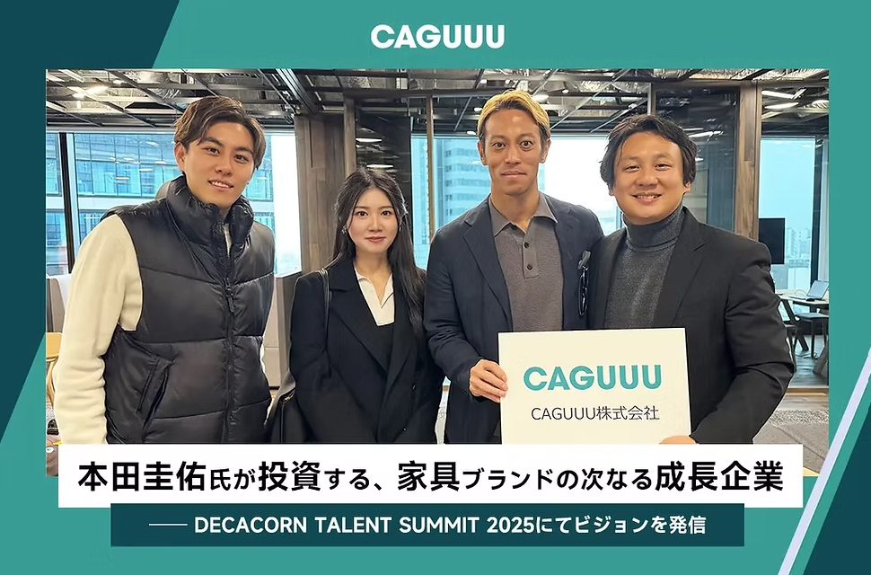 おしゃれな高品質家具をリーズナブルな価格で提供するCAGUUU株式会社(本社:東京都港区、代表取締役社長:中村勇輝)は、本田圭佑氏が率いるベンチャーキャピタル「X&KSK」が4/13(日)に開催した、合同採用イベント「Decacorn Talent Summit 2025」に参加しました。