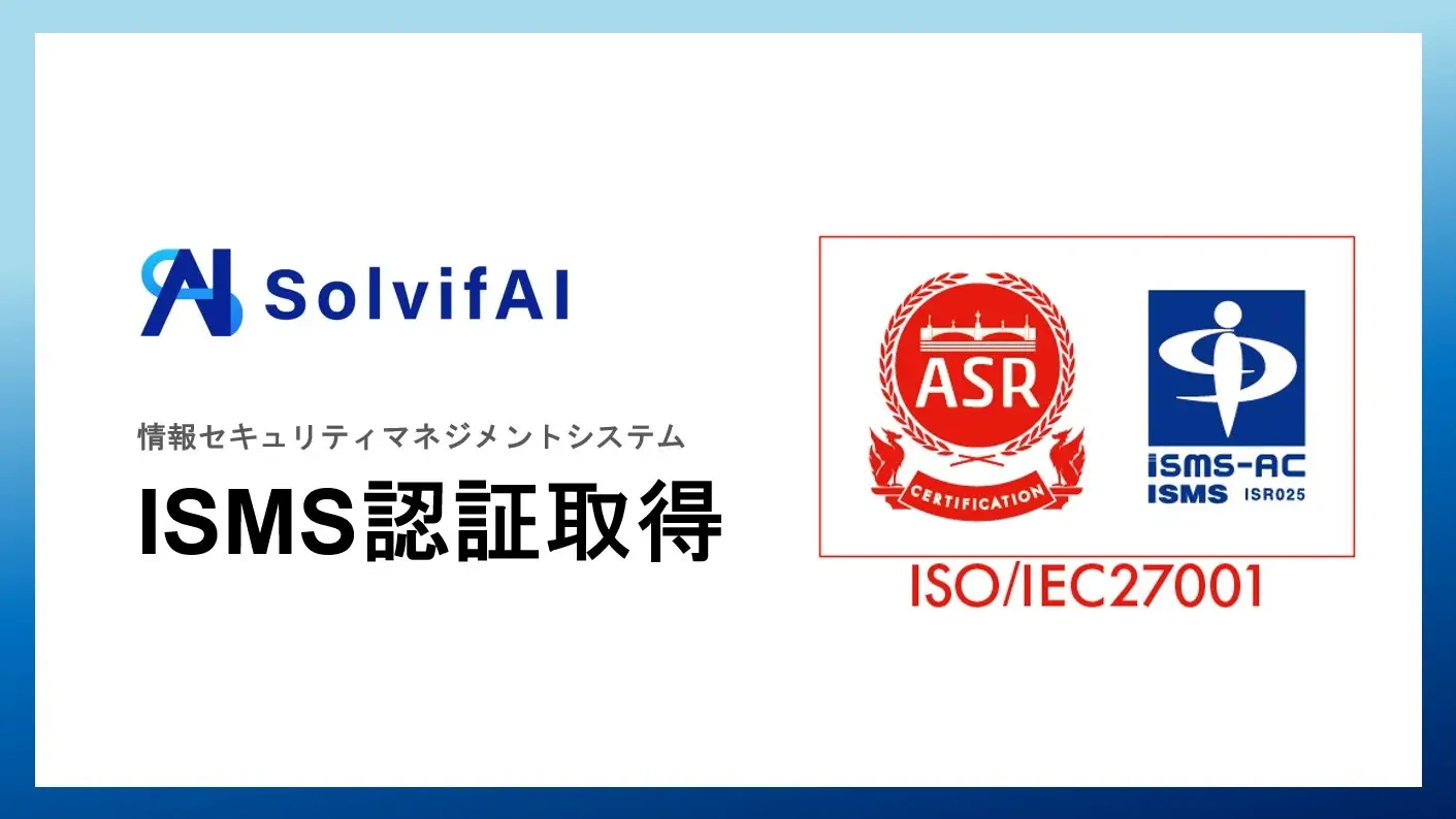 IT/DXプロジェクト成功を支援するAI SaaSツール 「SolvifAI(ソルビファイ)」を提供する当社は、この度、ISMS認証を取得いたしました。SolvifAIは独自のAI技術を活用して要件定義書などの成果物を自動生成し、プロジェクト管理業務の自動化まで実現します。