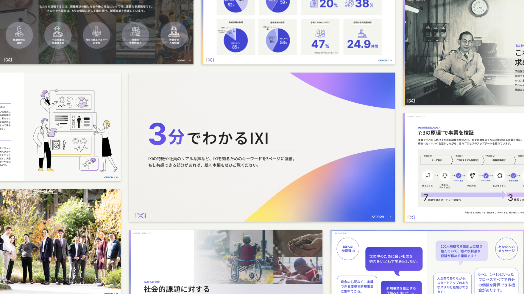 社会課題の解決を目指す新規事業組織として、オムロン内に設立されたIXI。背景にある想いやストーリーの表出と、それに共感する人材の継続的な獲得が求められる中、一貫したブランドメッセージを届けるための情報整理とコミュニケーション戦略の策定を支援しました。