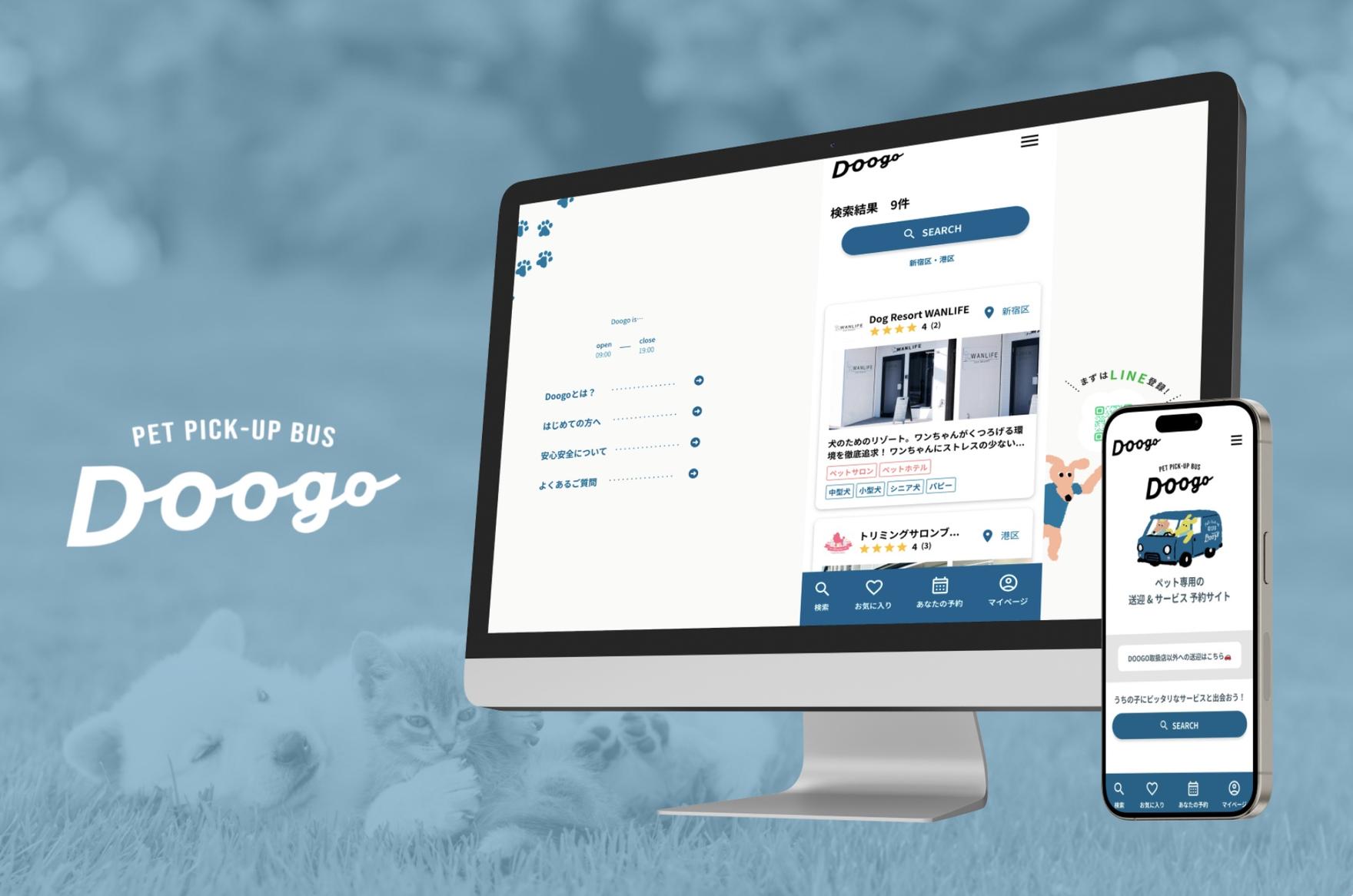 Doogo様は、ペットサロンやクリニック、ペットホテルと連携したペット送迎サービスを行っている企業です。もっと気軽にペットケアサービスを利用したい、そんな声から生まれたサービスです。