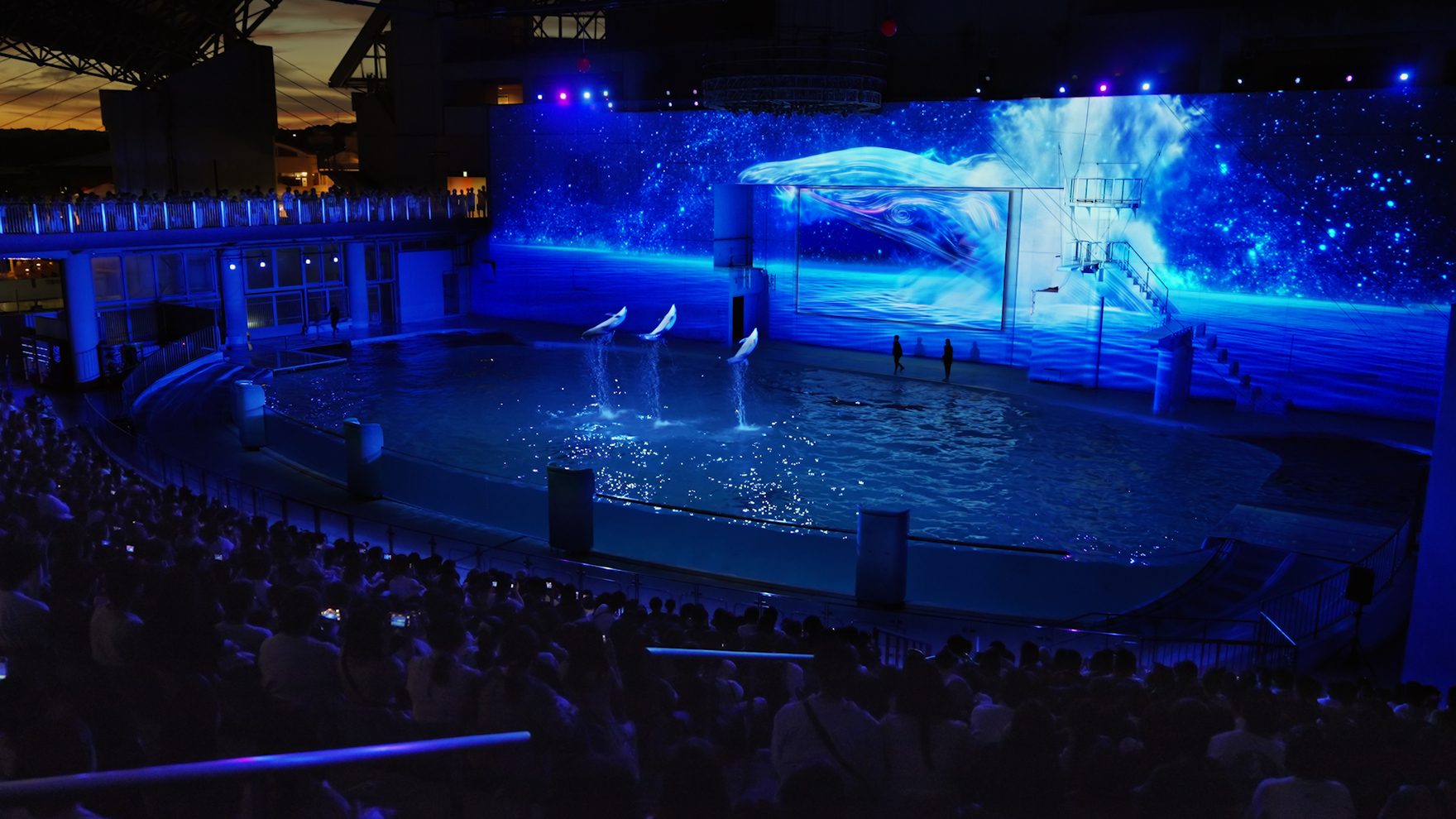 イルカとプロジェクションマッピングが融合する横浜・八景島シーパラダイスの大人気ナイトパフォーマンス『LIGHTIA』の総合演出・制作を担当しました。“LIGHTIA”は、幻想的なプロジェクションマッピングとイルカたちの躍動を融合させた没入型のショーです。