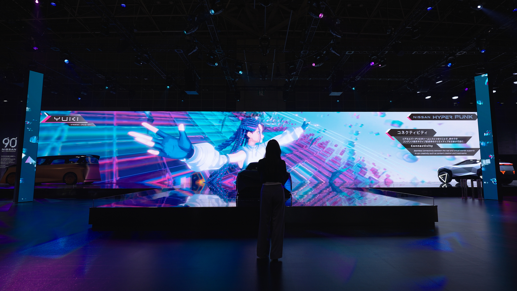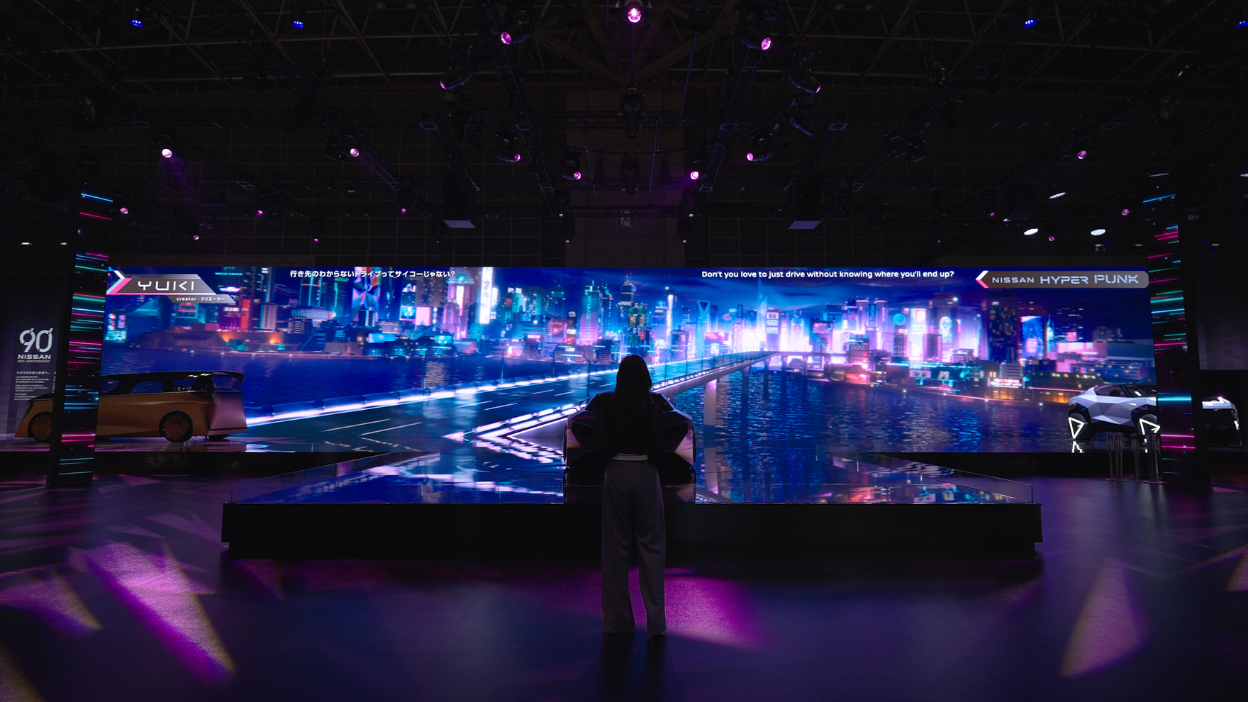 「JAPAN MOBILITY SHOW2023」のNissanブースのメインコンテンツ「Nissan Future Movie」の演出・制作を担当しました映像はワイド35mの巨大なLEDウォールに映し出され、会場のショーカー、照明、音響、LEDピラーのすべてが連動し、リアルとデジタルがシームレスに融合した演出体験を作りました。