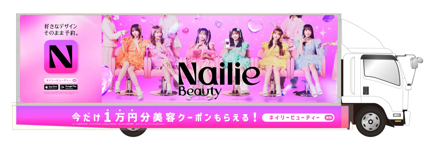 さらに、Nailie Beauty(ネイリービューティー)のキービジュアルと連動したフルラッピング仕様のアドトラックが東京・大阪エリアを走行いたしました。
